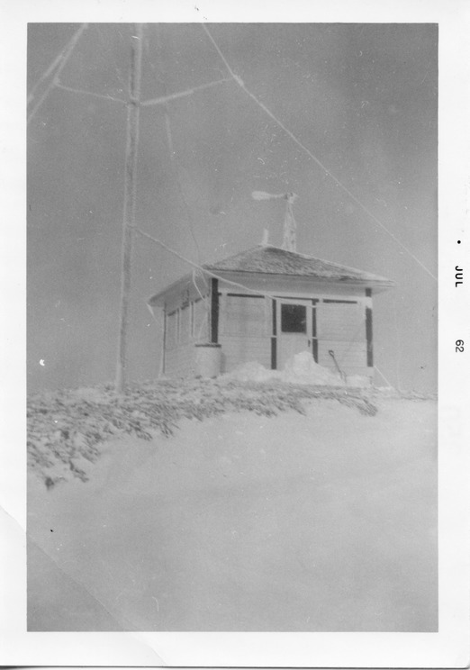 We got some snowfall and occasionally a severe cold snap but it never lasted very long and the snow would disappear in a few days. We would pick the best days to go out to town for supplies or attend Reserve Headquarters; it was often above zero when we left home, then we found it twenty-five to thirty degrees below zero on the outside. When building the lookout[2] I had occasion to pick up some lumber from No. 2 Ranger Station at Rocky Mountain House and had to have a tractor pull my truck through deep snow into and away from the lumber piles; by the time I got home I could write my name in the dust on my load of lumber.