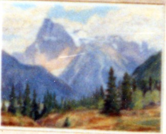 [10] This is the best picture we can find of Bessie Barnes' painting of Mount Siffleur, zoomed in from a photo of John's living room wall in 1991. The location of the original painting is unknown.