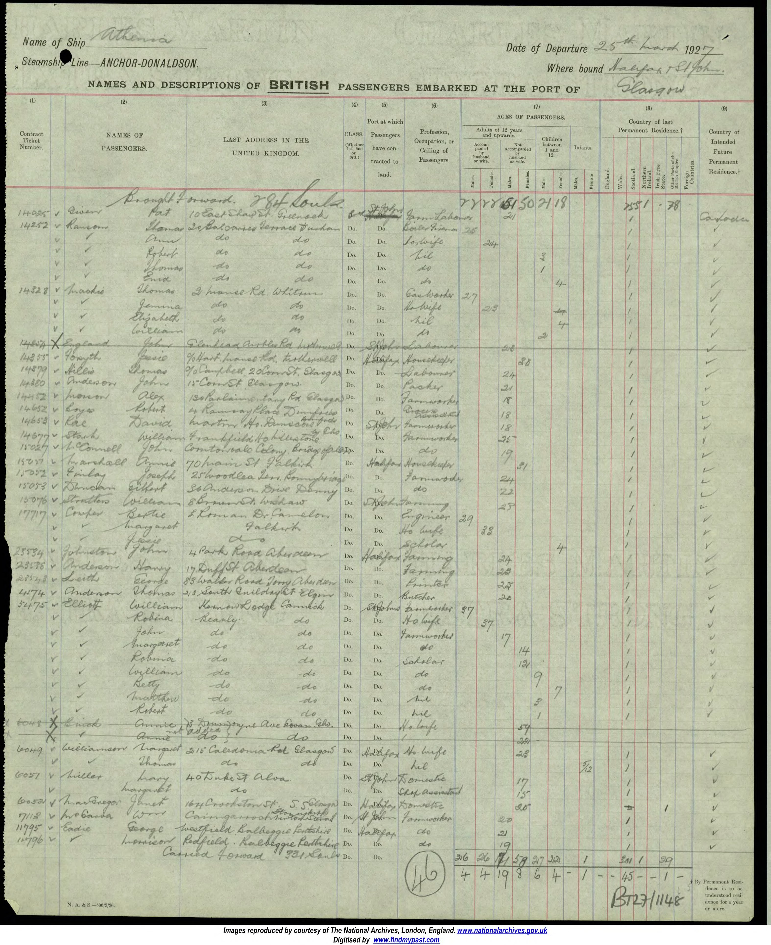 The estate truck took them and their luggage to the train in Beauly. This was their first step of their journey. They arrived in Glasgow about 4 am. This is where they boarded the ship Athenia, for Canada. Athenia was the first ship to be sunk in the 2nd World War. Some of the Elliott clan came from Paisley to see us off. Of course Grannie Elliott. This would be the last time she would see her oldest son. Not a tear did she shed. She was small but oh how strong. Aunt Peggy was there with Margaret MacKenzie as a baby. When Aunt Peggy said the baby was wet, maybe they should go, Grannie just unbuttoned one of her flannelette petticoats and there was dry clothes for the baby. Grannie so dependable.