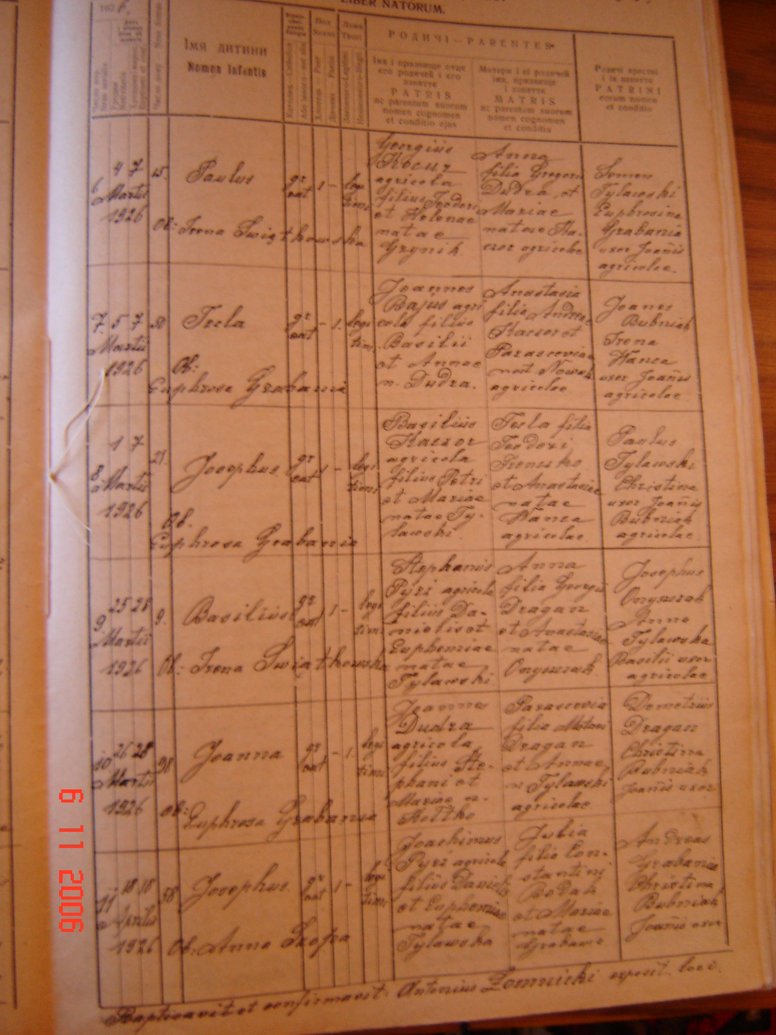 Their first son Michael [11223] was born in Passaic a year later, on August 14, 1896. Neighbors who stood as godparents were Joannes Wancio from Újak and Julia Dziama from Bednarka. Again, it was Rev. Szatała who performed the baptism and confirmation two days later, on August 16.