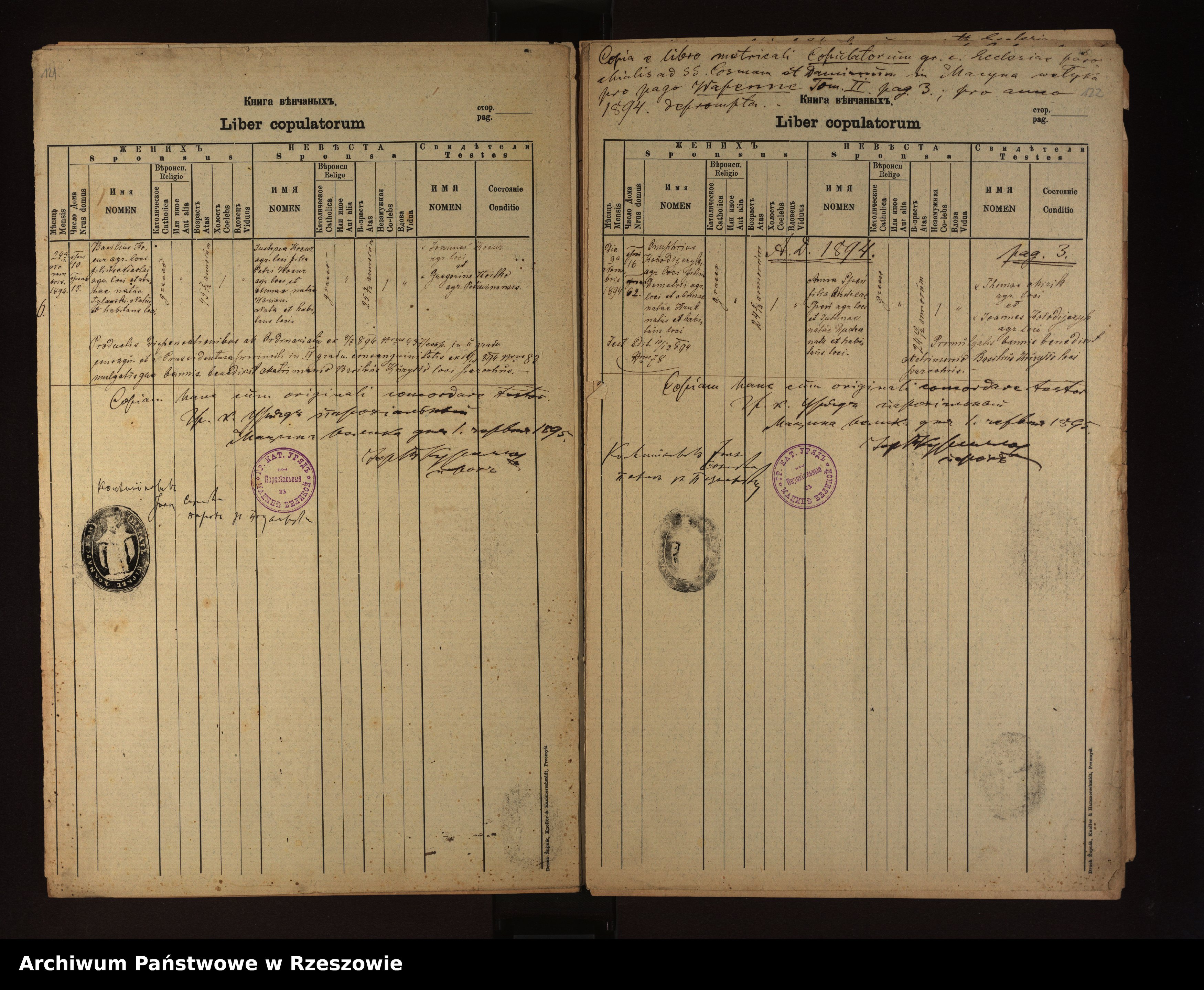 | 2 | 1894.11.03 | Wapienne | 16 | Onuphrius Kołodijczyk | 24 5/12 | 62 | Anna Spen | 24 10/12 | Demetrius Kołodijczyk | Anna Kruk | Andreas Spen | Justina Dudra |