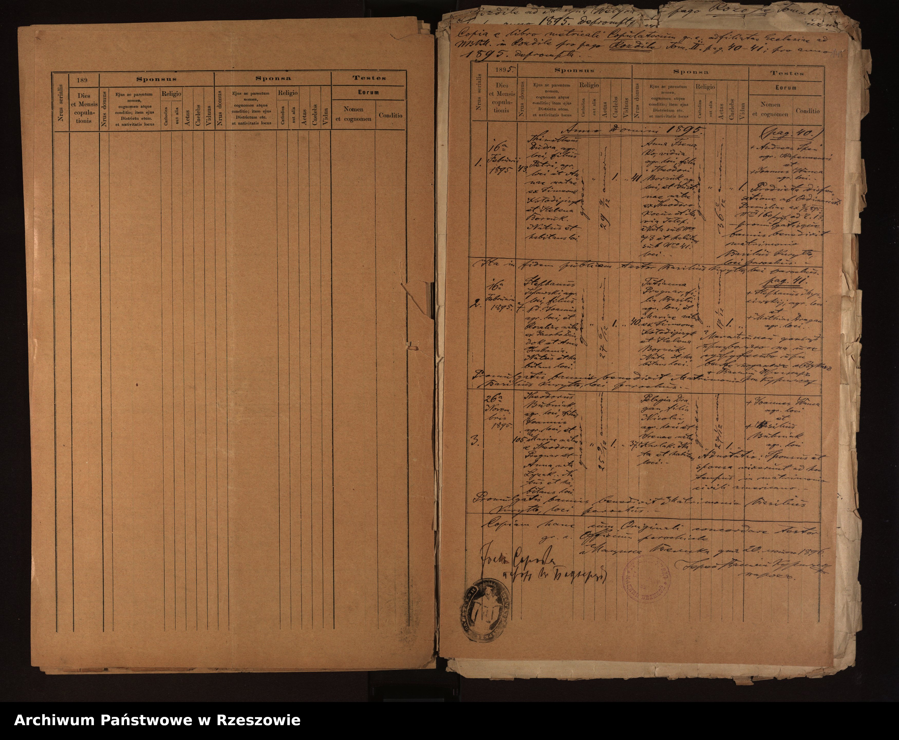 | 1 | 1895.02.16 | Rozdziele | 43 | Thimotheus Dudra | 29 9/12 | 41 | Anna Borsuk | 36 2/12 | Yes | Petrus Dudra | Anna Kołodijczyk | Theodorus Borsuk | Justina Kocur | |
