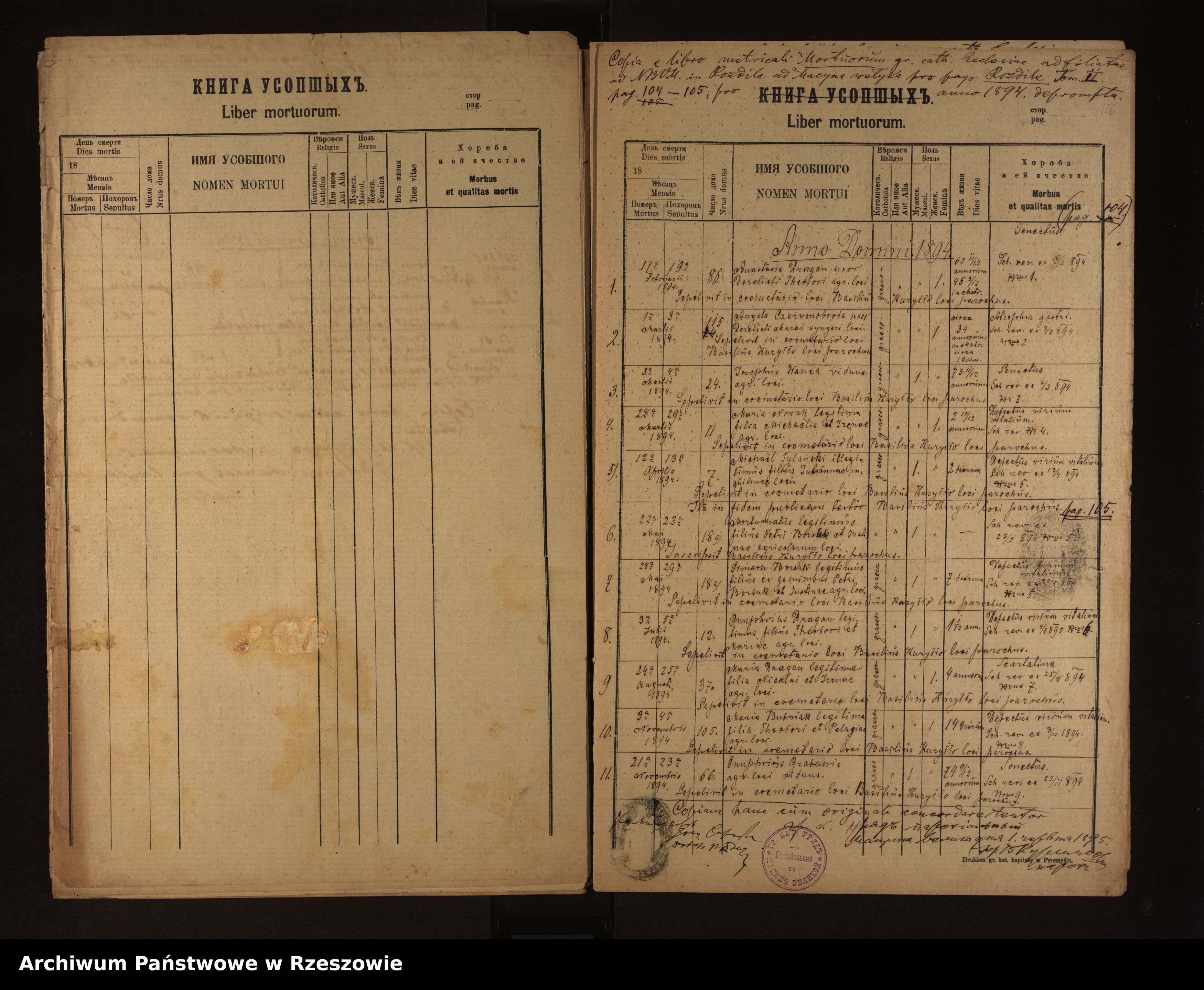 | 11 | 1894.11.21 | Rozdziele | 66 | Onuphrius Grabania | Catholic | male | 74 9/12 | Senectus |