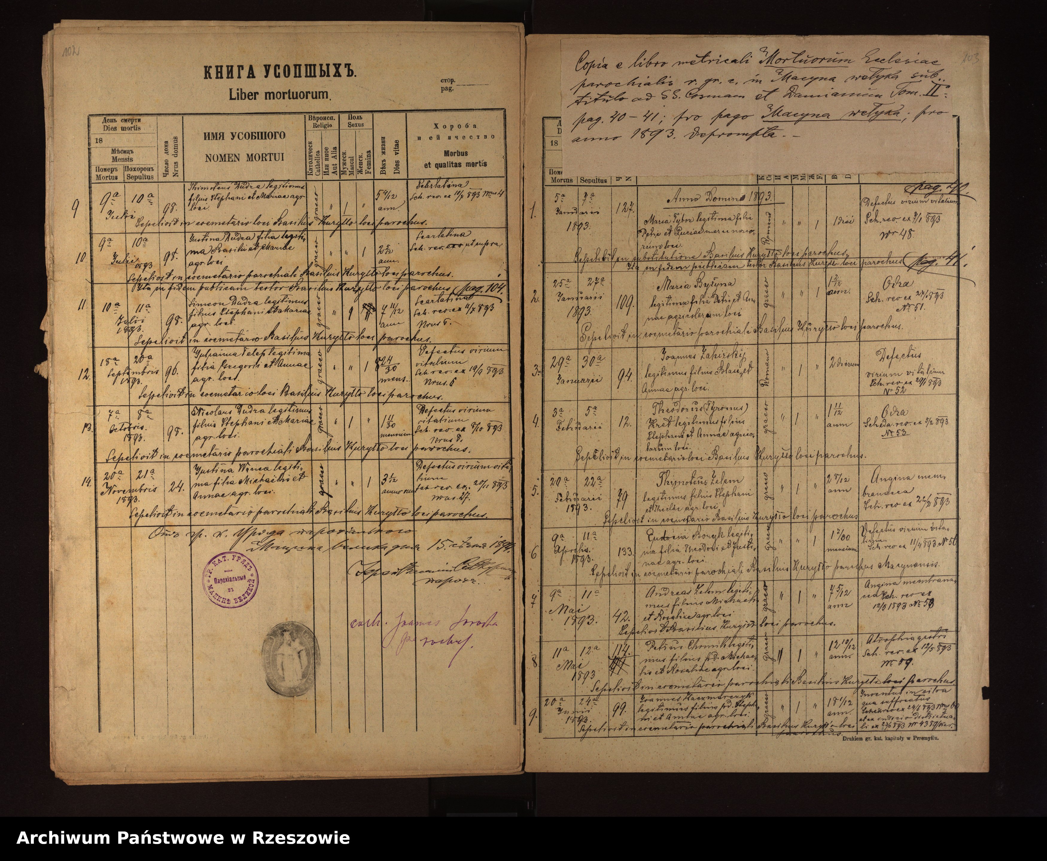 | 1 | 1893.07.09 | Rozdziele | 98 | Timotheus Dudra | Catholic | male | 5 4/12 | Scarlatina | Stephanus Dudra | Maria Dudra | ||