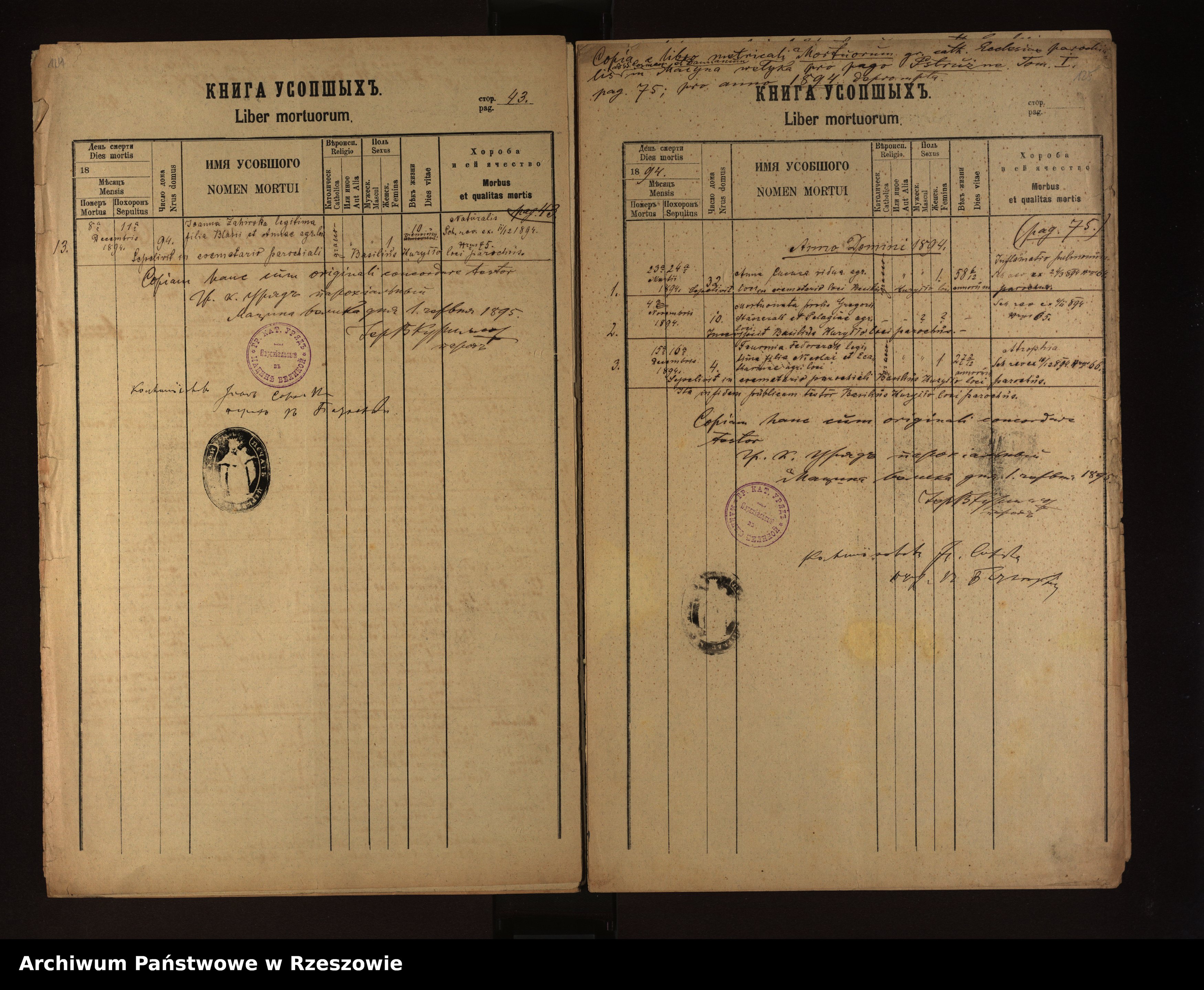 Metrical Records for the Greek Catholic Parish of Męcina Wielka, 1890-1897