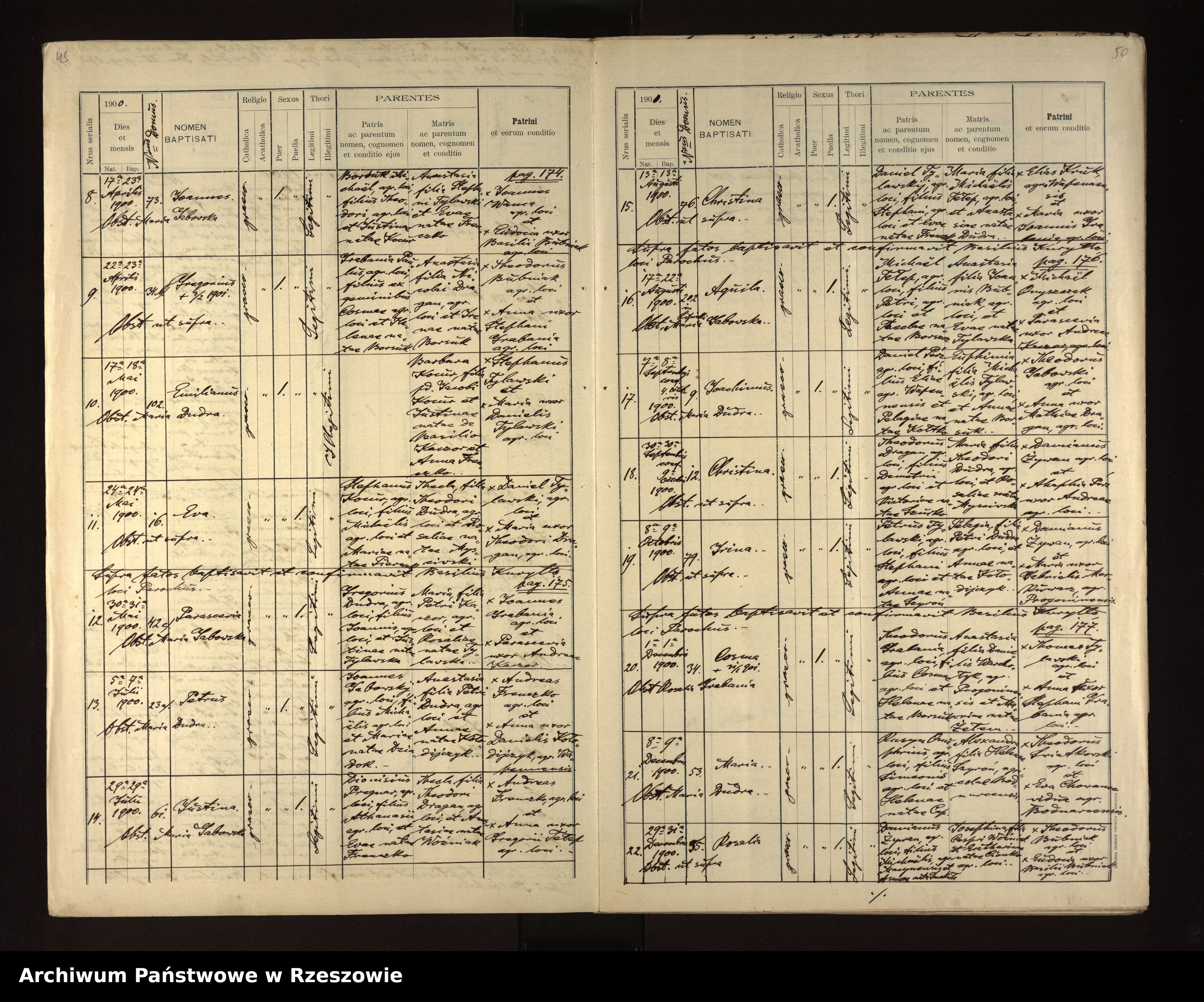 | 10 | 1900.09.07 | Rozdziele | 9 | Joachimus Perz | Catholic | male | Daniel Perz | Euphimia Tylawski | ||