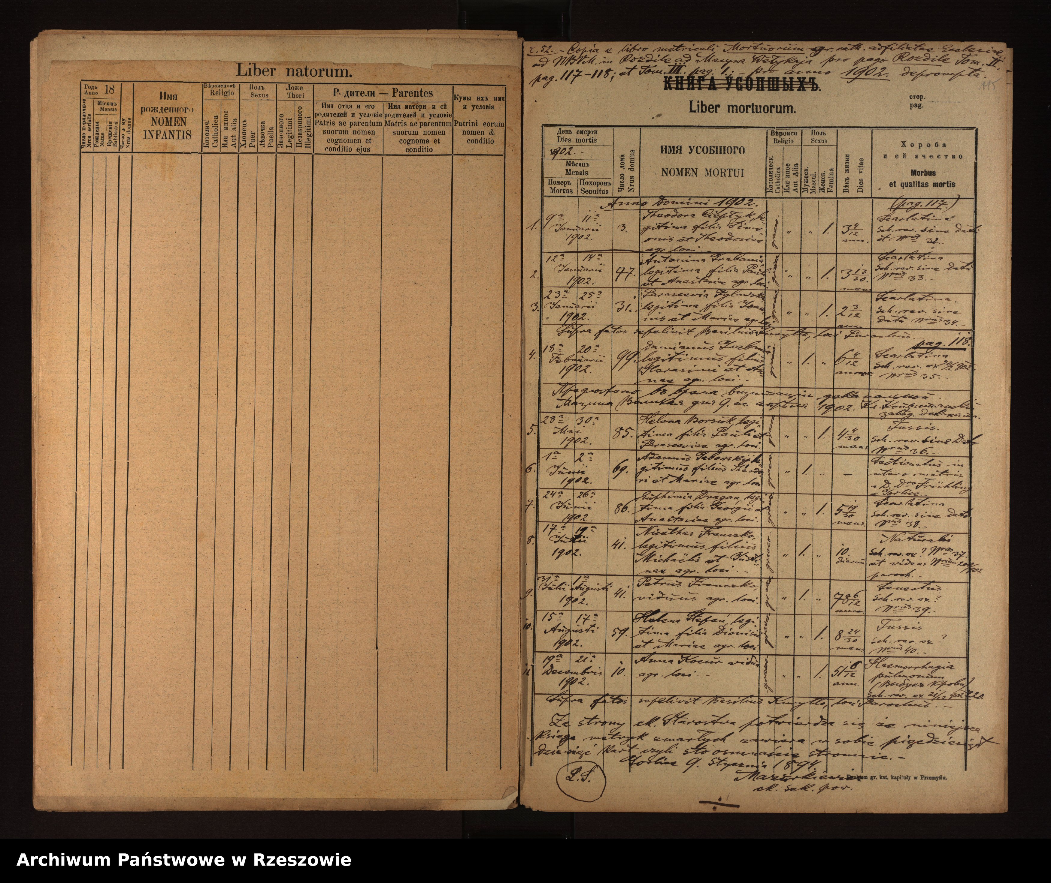 | 1 | 1902.01.09 | Rozdziele | 3 | Theodora Ciepłyk | Catholic | female | 3 4/12 | scarlatina | Simeon Ciepłyk | Theodosia Ciepłyk | ||