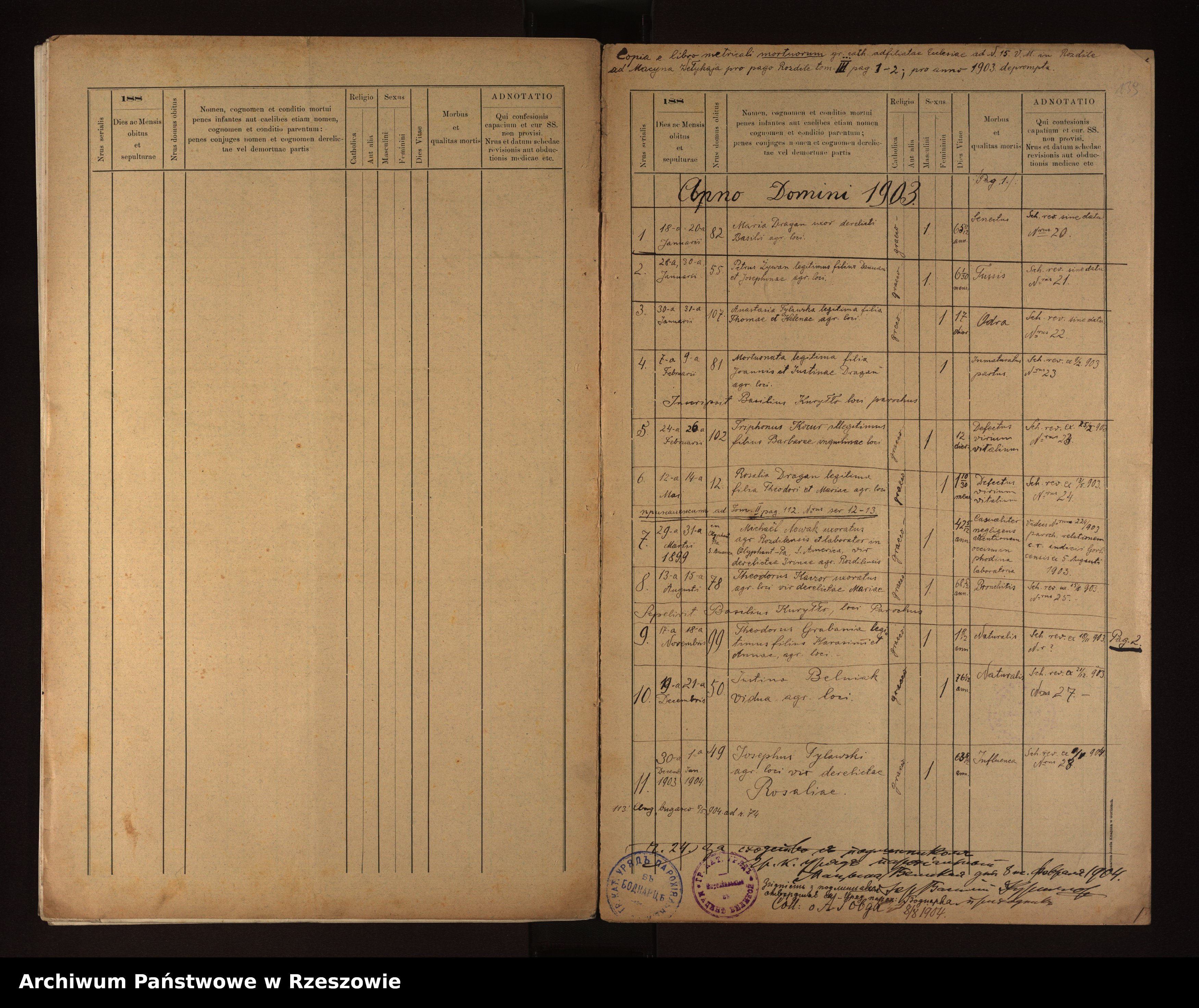 | 8 | 1903.08.13 | Rozdziele | 78 | Theodorus Kaczor | Catholic | male | 68 5/12 | Maria Kaczor |