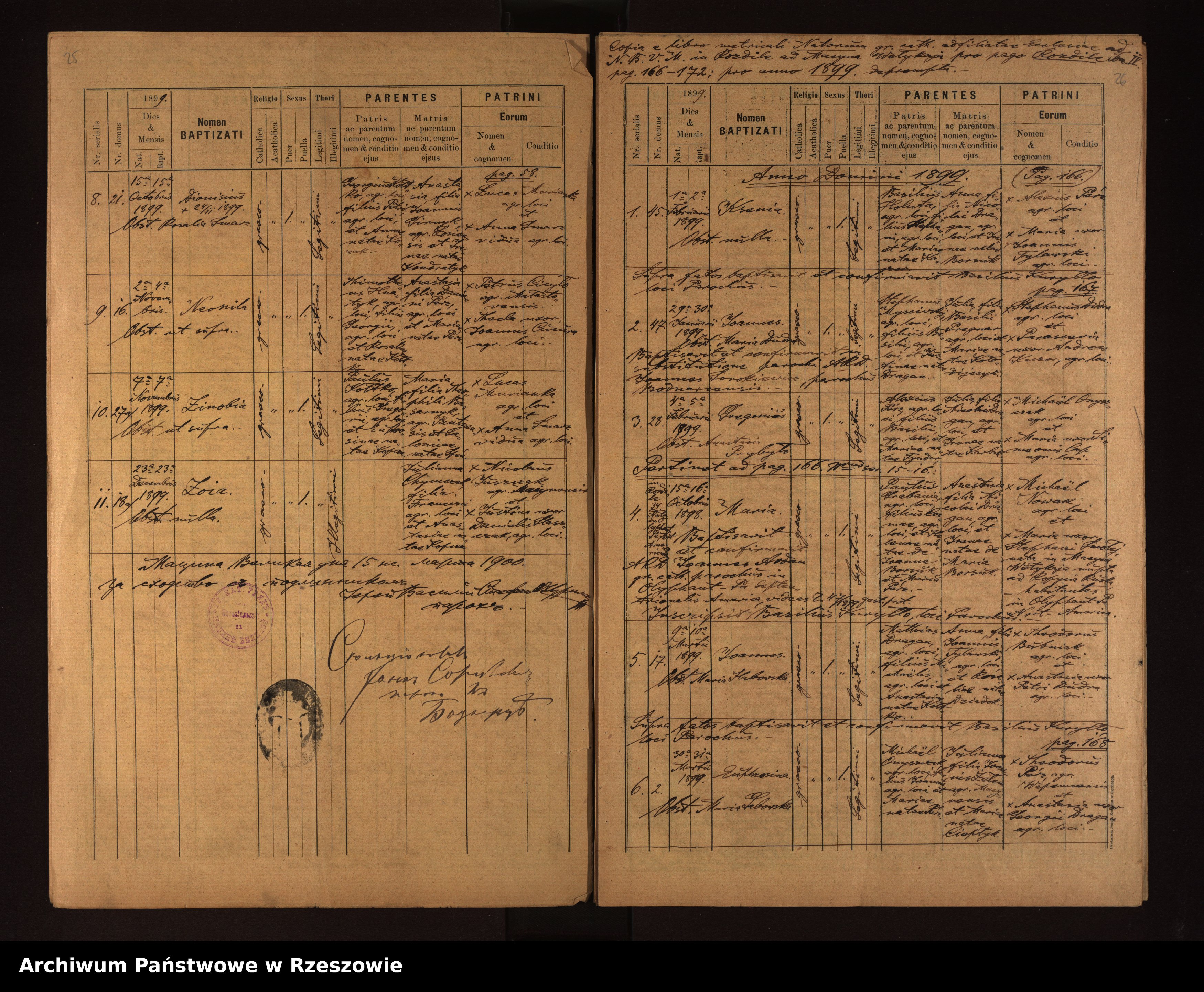 | 7 | 1899.02.04 | Rozdziele | 28 | Gregorius Perz | Catholic | Maximus Perz | Julia Dragan | |||