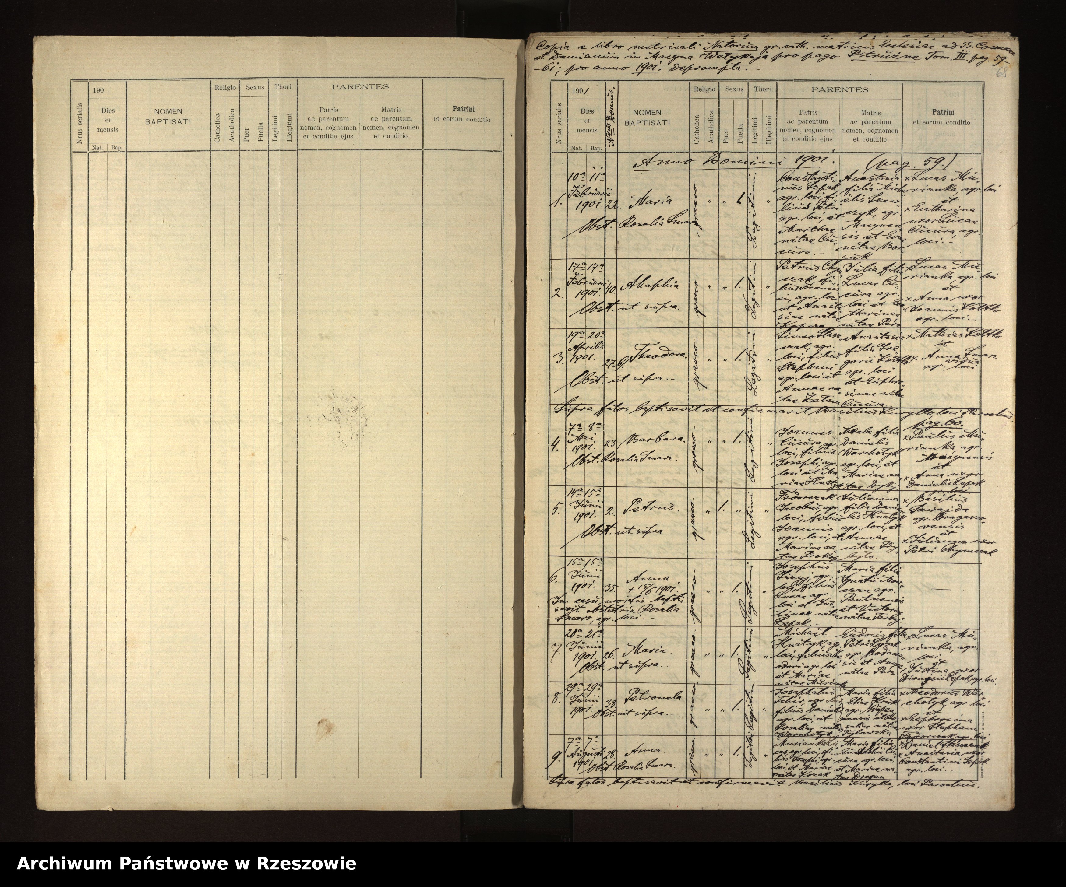| 9 | 1901.08.07 | Pstrążne | 28 | Anna Murianka | Catholic | female | Lucas Murianka | Maria Cucura |