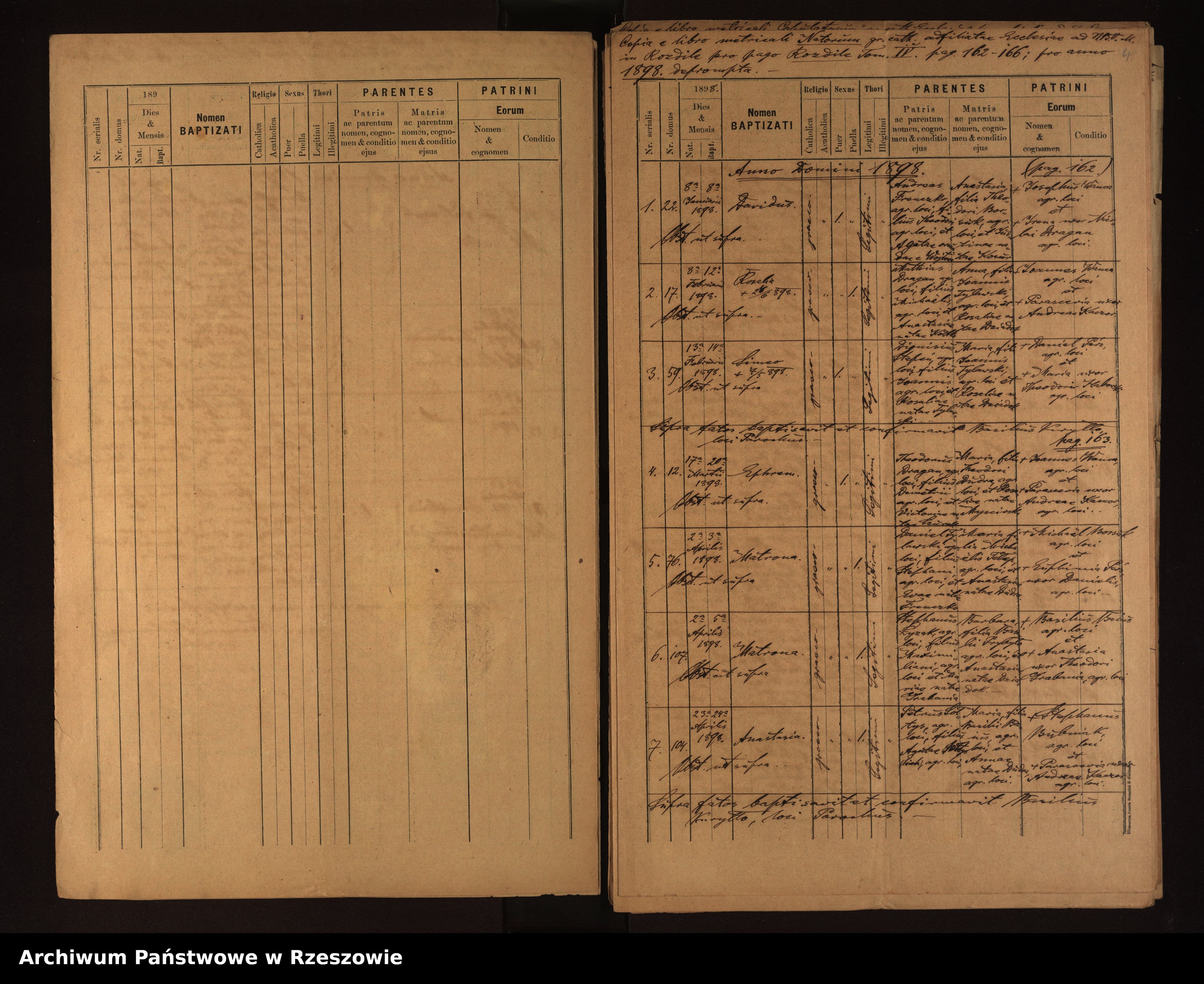 | 7 | 1898.04.23 | Rozdziele | 104 | Anastasia Sołtys | Catholic | female | Petrus Sołtys | Maria Baius |