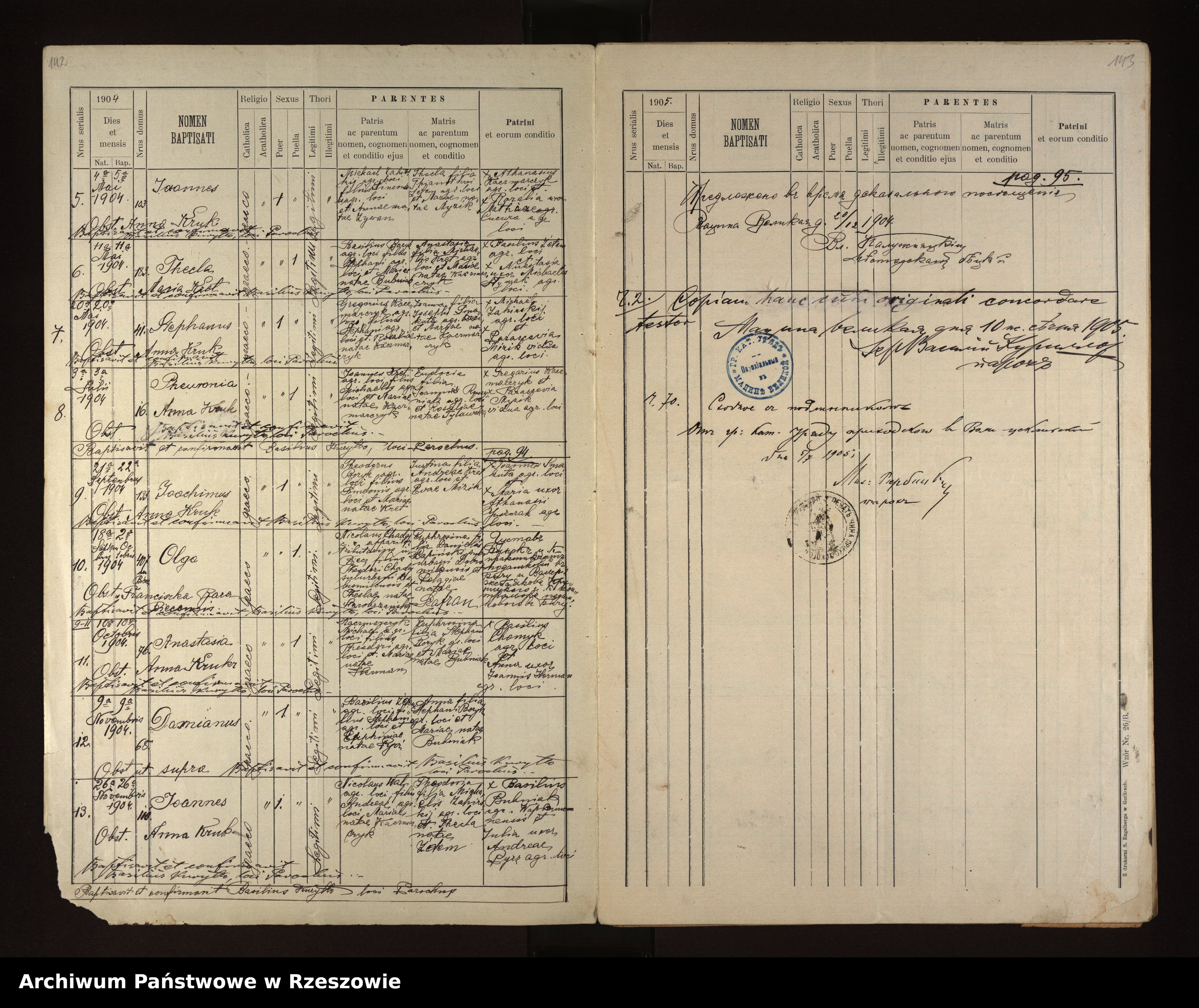 | 5 | 1904.09.21 | Męcina Wielka | 133 | Joachimus Boryk | Catholic | male | Theodorus Boryk | Justina Kret | ||
