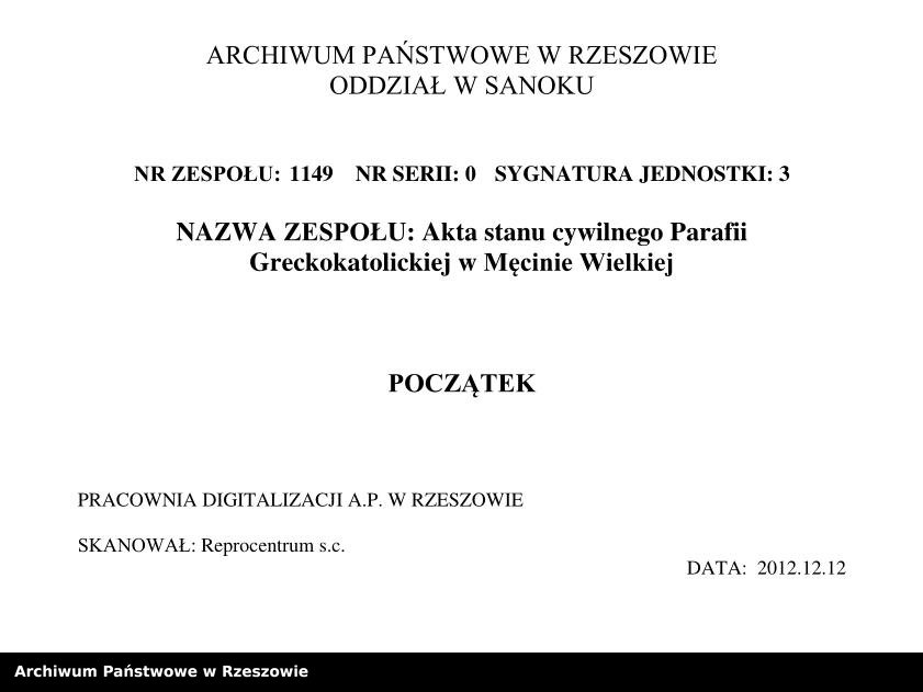 Metrical Records for the Greek Catholic Parish of Męcina Wielka, 1838-1867