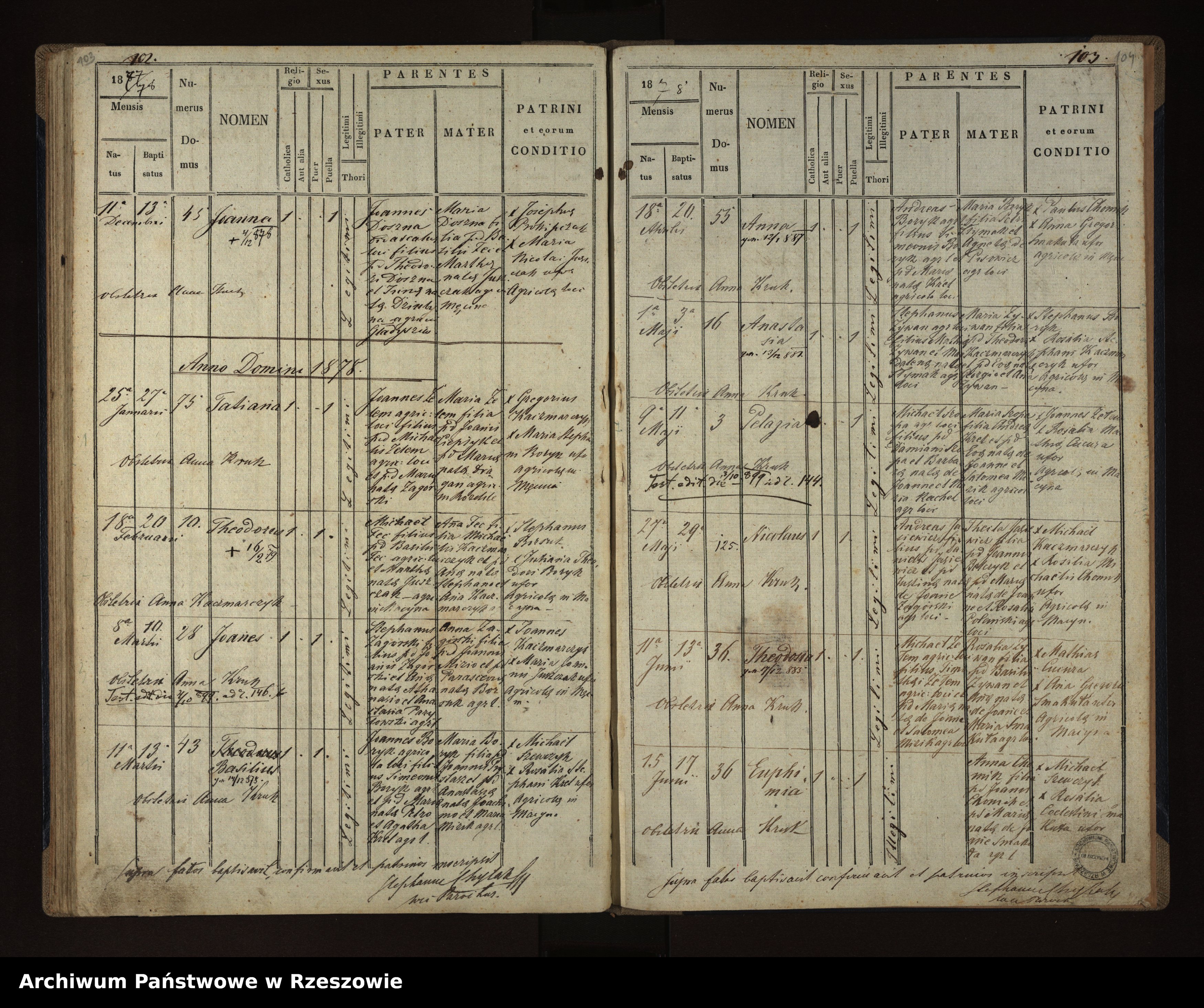 | 7 | 1878.05.01 | Męcina Wielka | 16 | Anastasia Zywan | Catholic | female | Stephanus Zywan | Maria Kaczmarczyk | ||