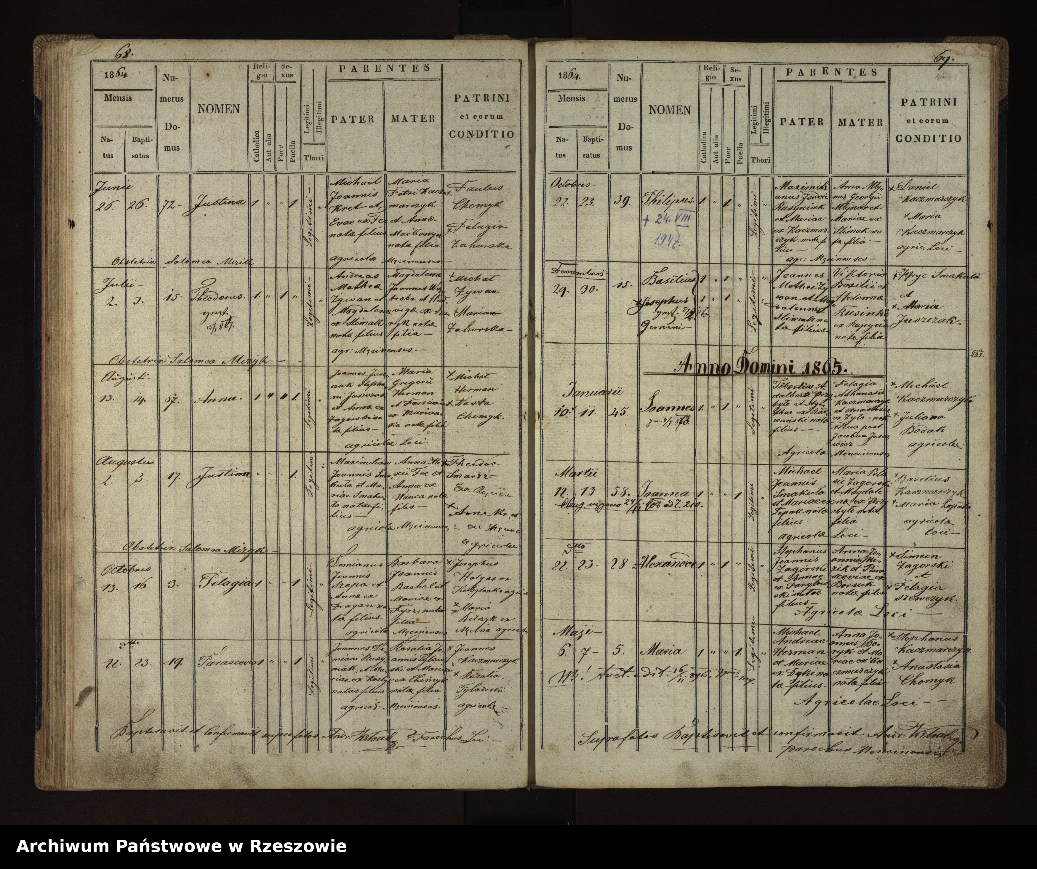 | 5 | 1864.10.13 | Męcina Wielka | 3 | Pelagia Szopa | Catholic | female | Demianus Szopa | Barbara Rachel | ||
