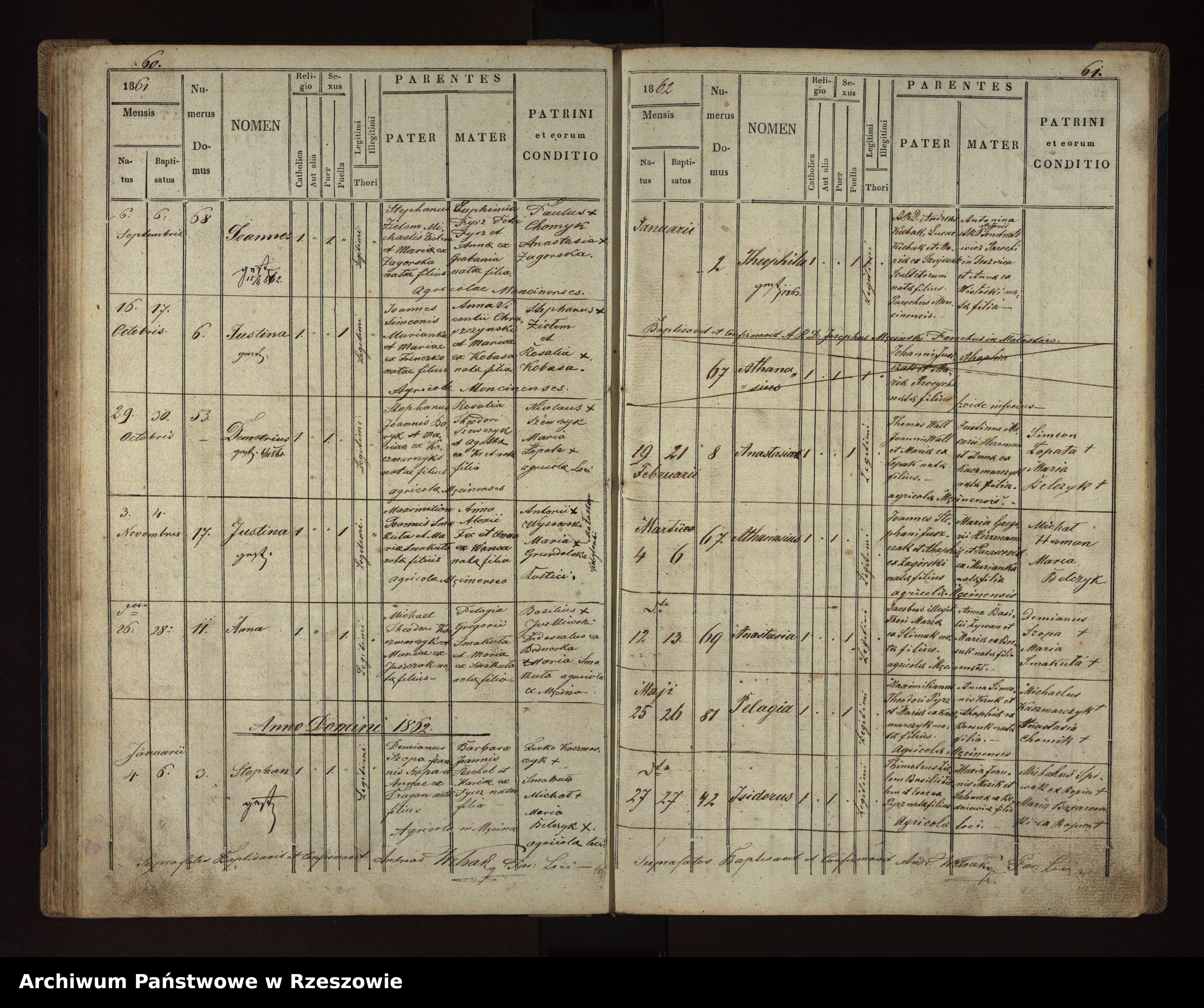 | 5 | 1861.11.26 | Męcina Wielka | 11 | Anna Kaczmarczyk | Catholic | female | Michael Kaczmarczyk | Pelagia Smakuła | ||