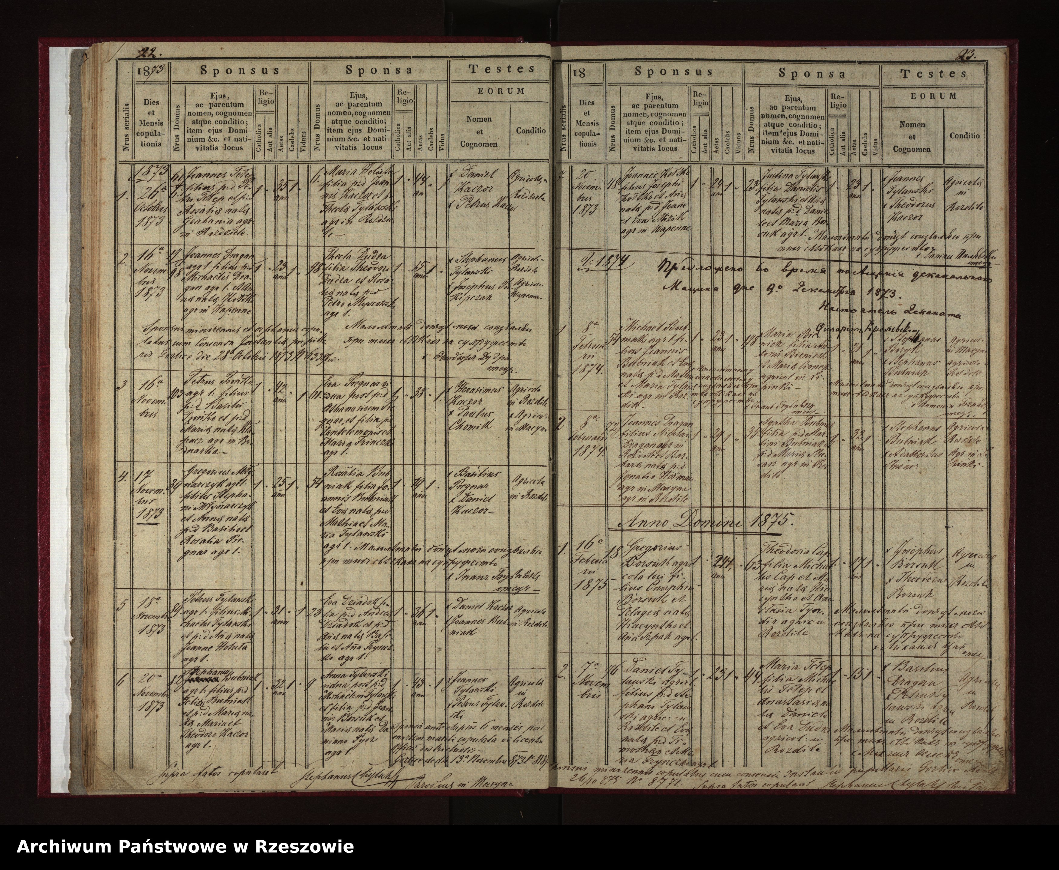 | 6 | 1873.11.20 | Rozdziele | 82 | Stephanus Bubniak | 32 | 9 | Anna Tylawski | 43 | Yes | Felix Bubniak | Maria Kaczor | Joannes Borsuk | Maria Pyrz | |