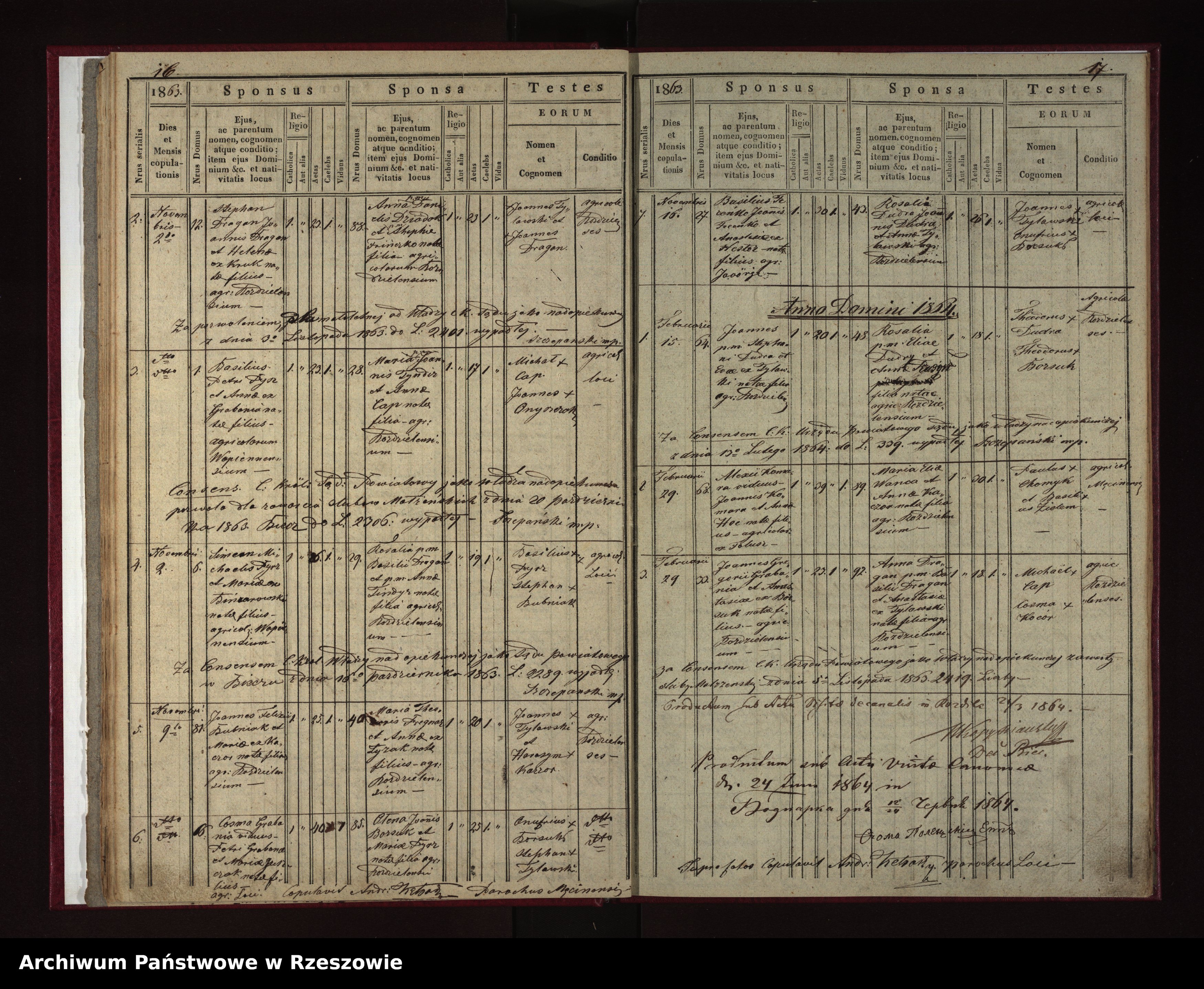 | 5 | 1863.11.09 | Rozdziele | 16 | Cosma Grabania | 40 | 85 | Helena Borsuk | 25 | Petrus Grabania | Maria Juszczak | Joannes Borsuk | Maria Pyrz |