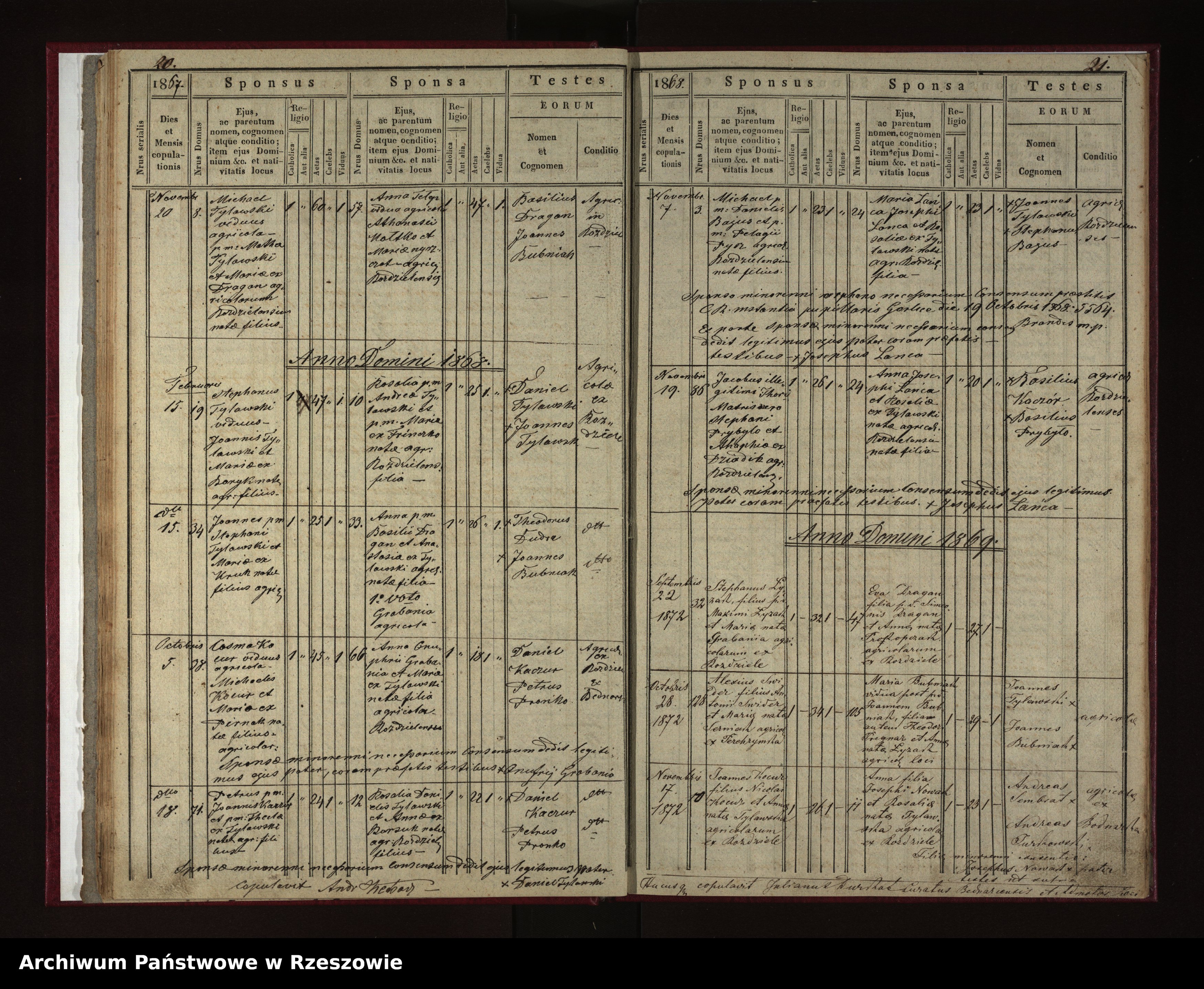 | 6 | 1868.11.07 | Rozdziele | 3 | Michael Bajus | 23 | 24 | Maria Łanca | 23 | Daniel Bajus | Pelagia Pysz | Josephus Łanca | Rosalia Tylawski | ||