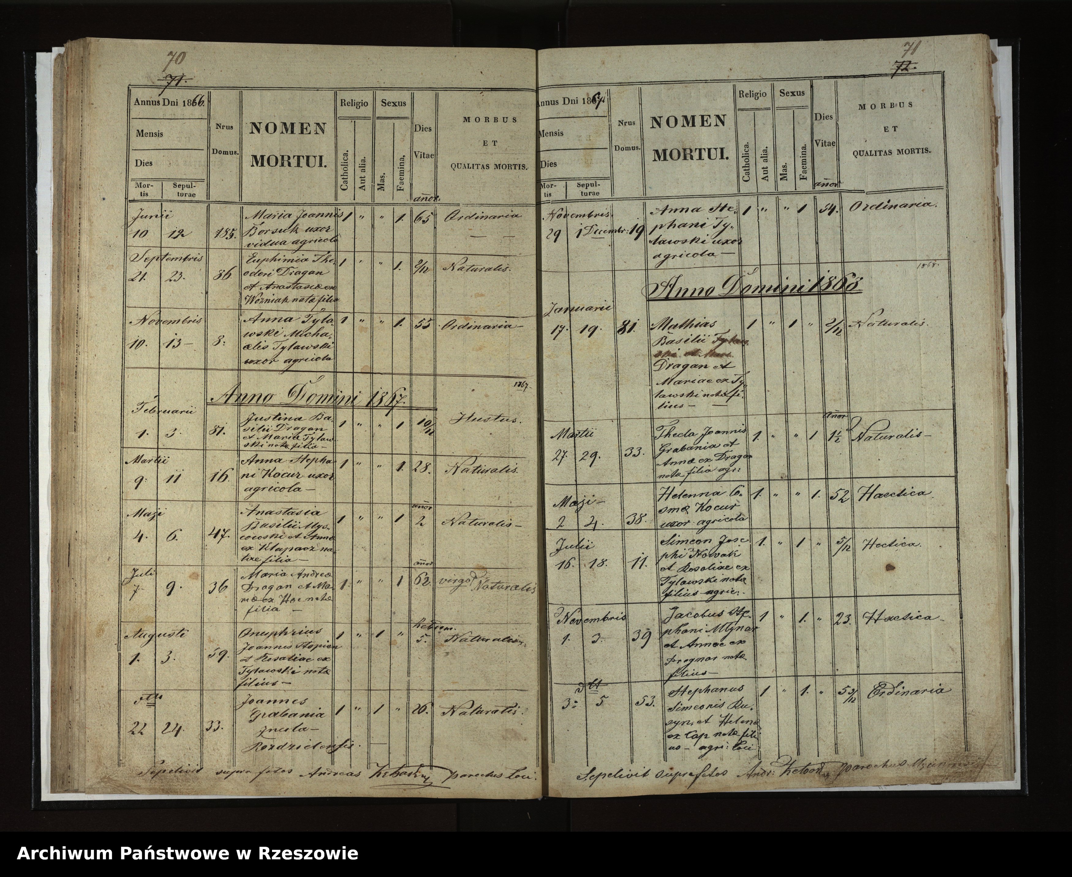 | 10 | 1867.11.29 | Rozdziele | 19 | Anna Tylawski | Catholic | female | 54 | Ordinaria | Stephanus Tylawski | |||