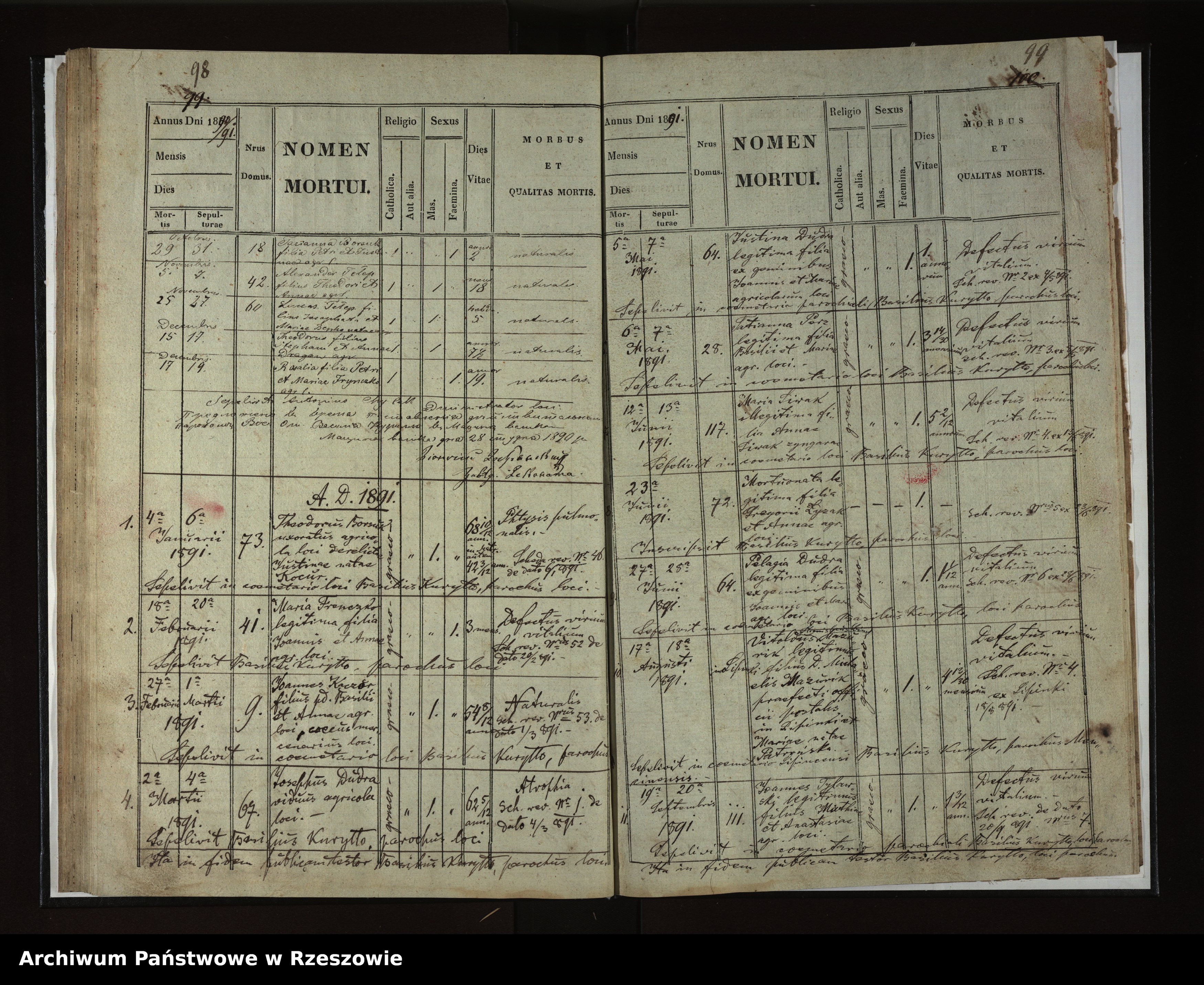 | 8 | 1891.02.27 | Rozdziele | 9 | Joannes Kaczor | Catholic | male | 54 8/12 | naturalis | Basilius Kaczor | Anna Kaczor | ||