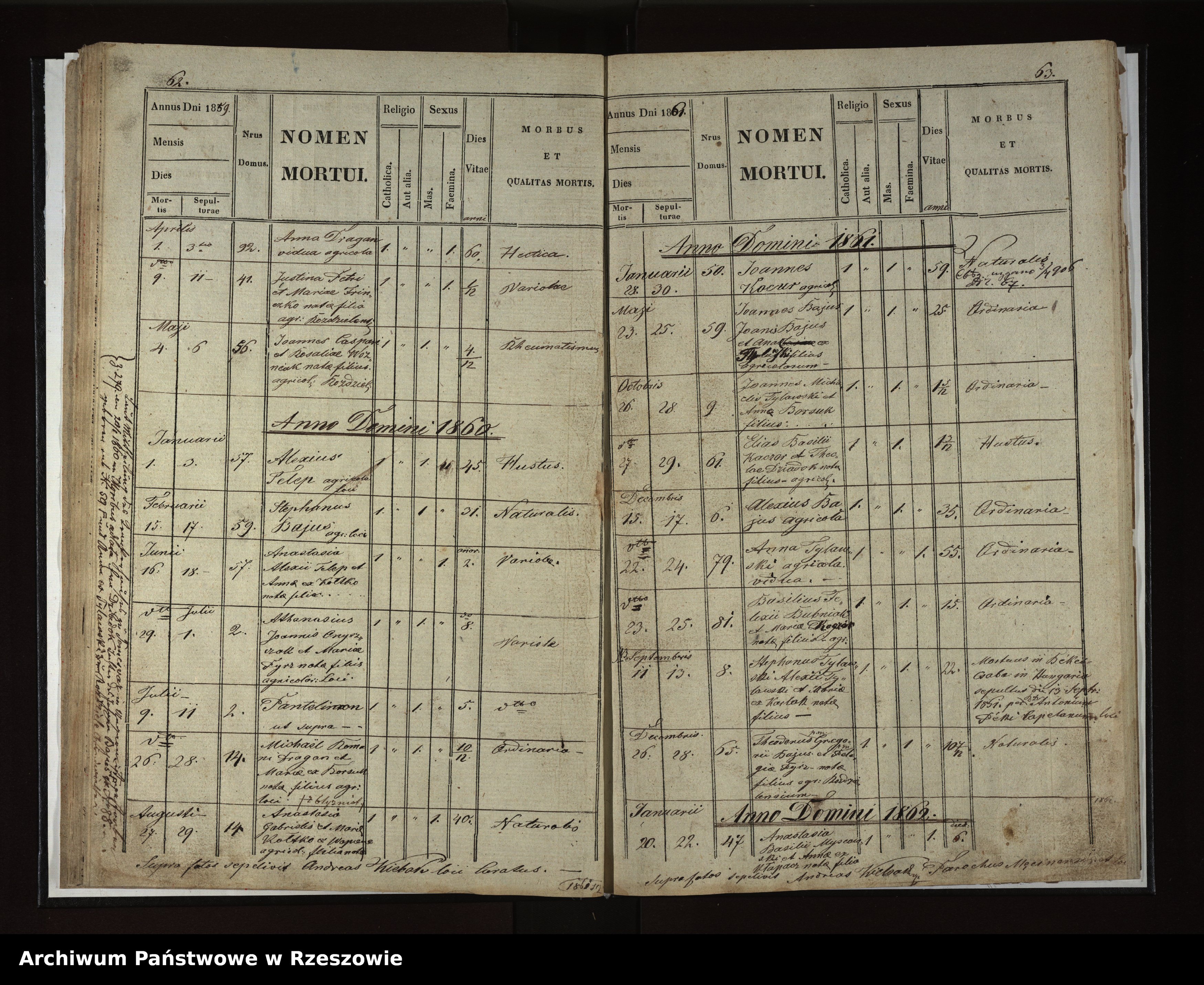 | 1 | 1859.04.01 | Rozdziele | 92 | Anna Dragan | Catholic | female | 60 1/12 | Hectica | ||||