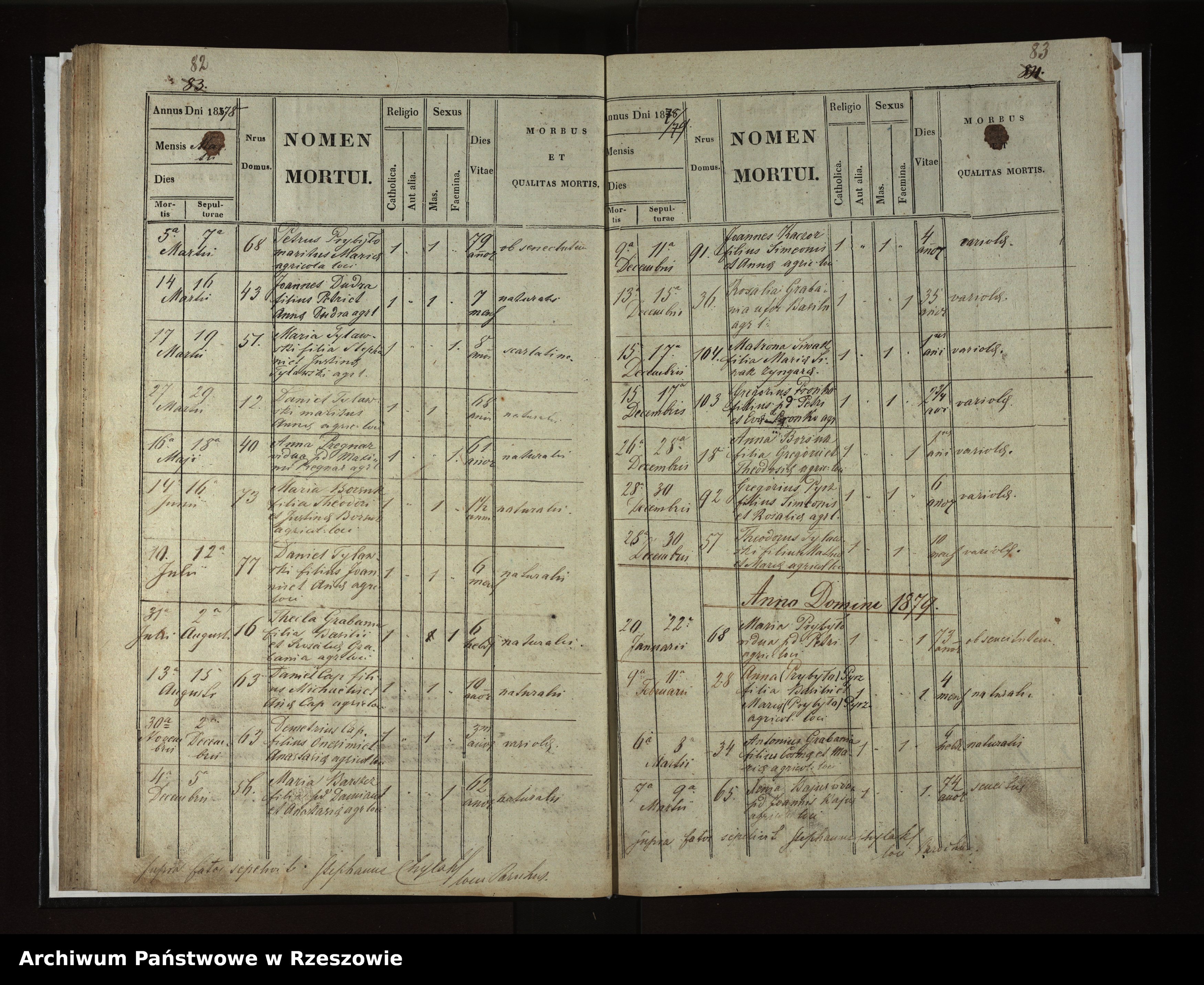 | 16 | 1878.12.26 | Rozdziele | 18 | Anna Borsuk | Catholic | female | 1 | variola | Gregorius Borsuk | Theodosia Borsuk | ||