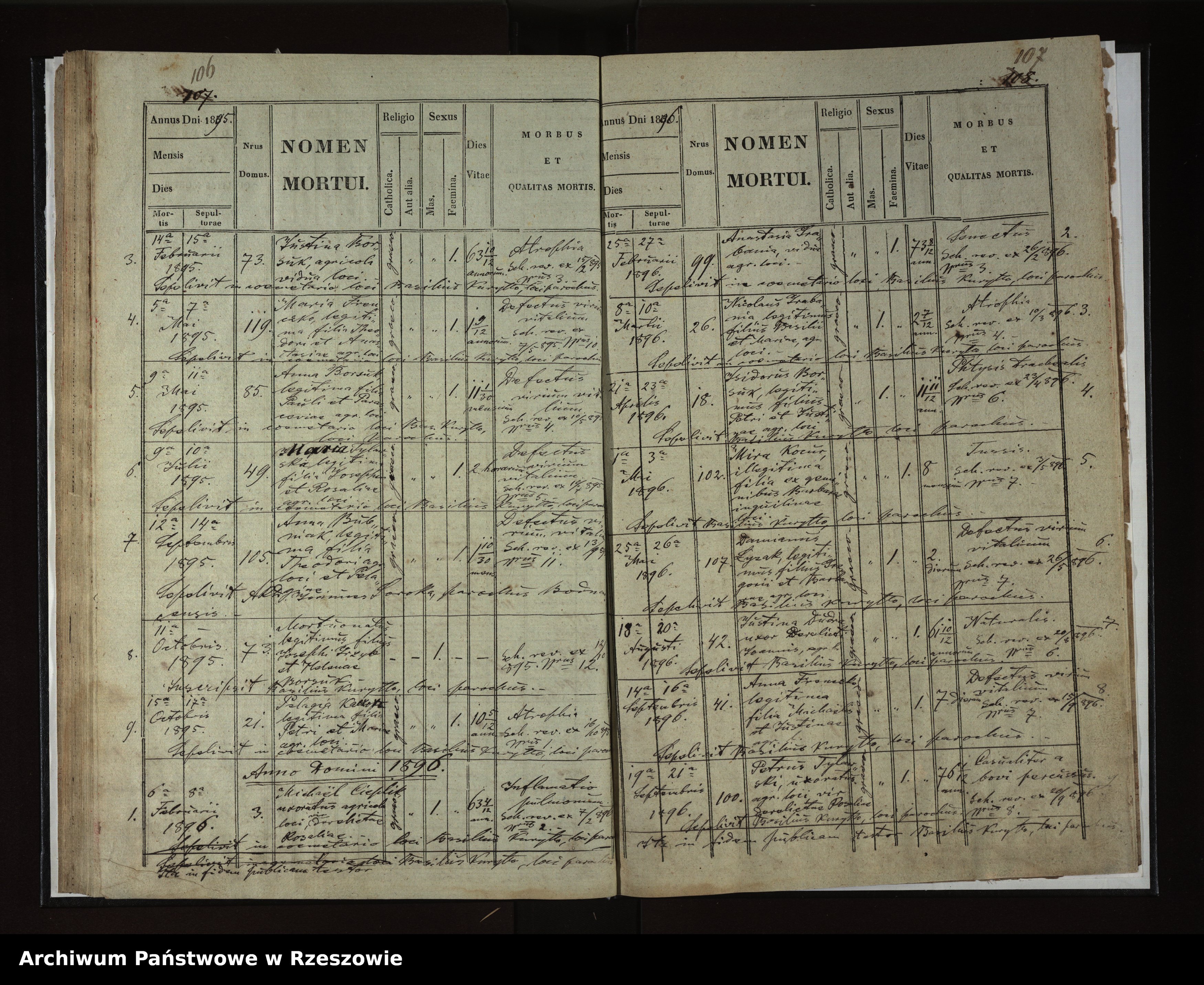| 7 | 1895.10.15 | Rozdziele | 21 | Pelagia Kaczor | Catholic | female | 10 5/12 | Atrophia | Petrus Kaczor | Maria Kaczor | ||