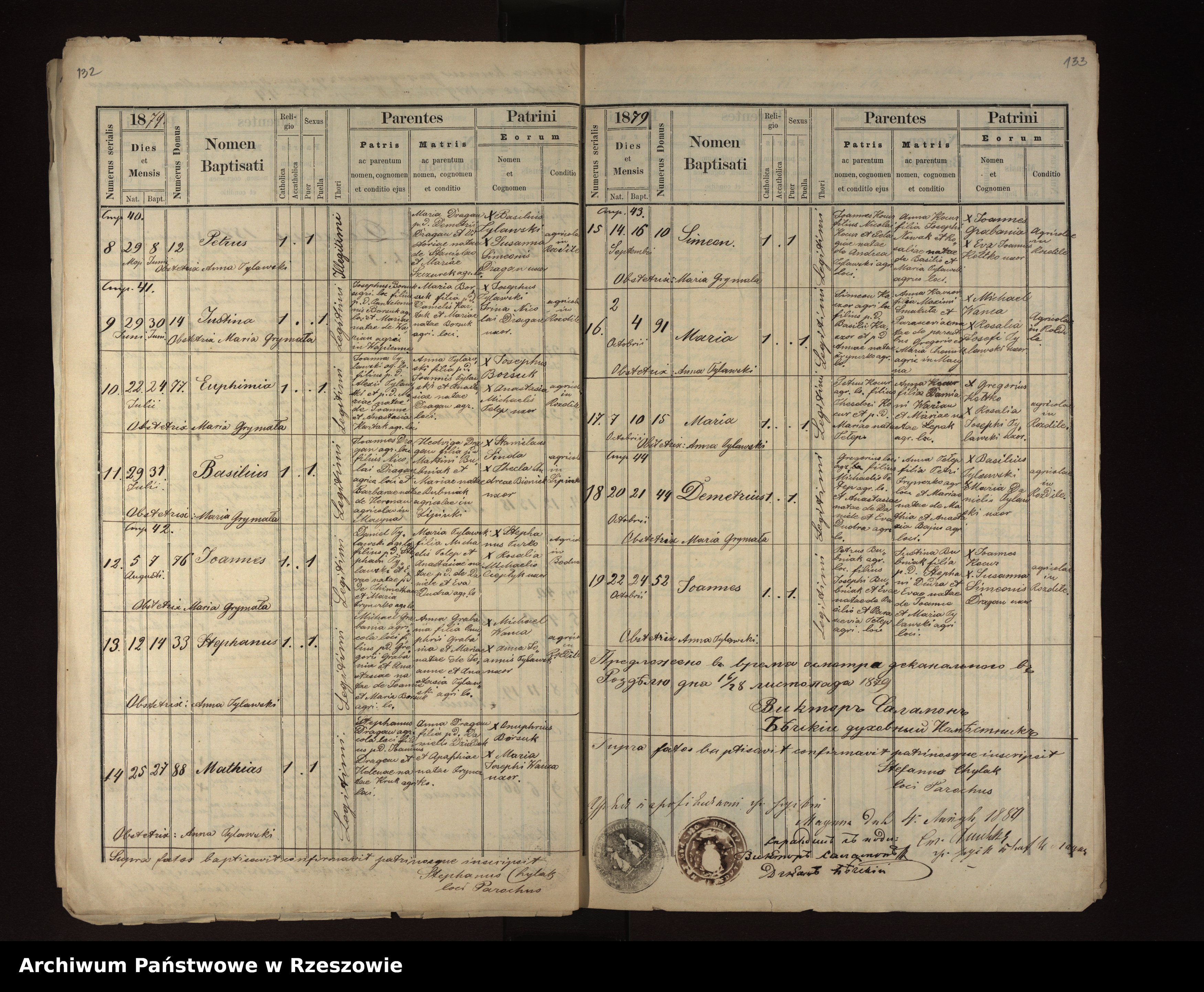 | 4 | 1879.07.29 | Rozdziele | Basilius Dragan | Catholic | male | Joannes Dragan | Hedviga Bubniak | |||