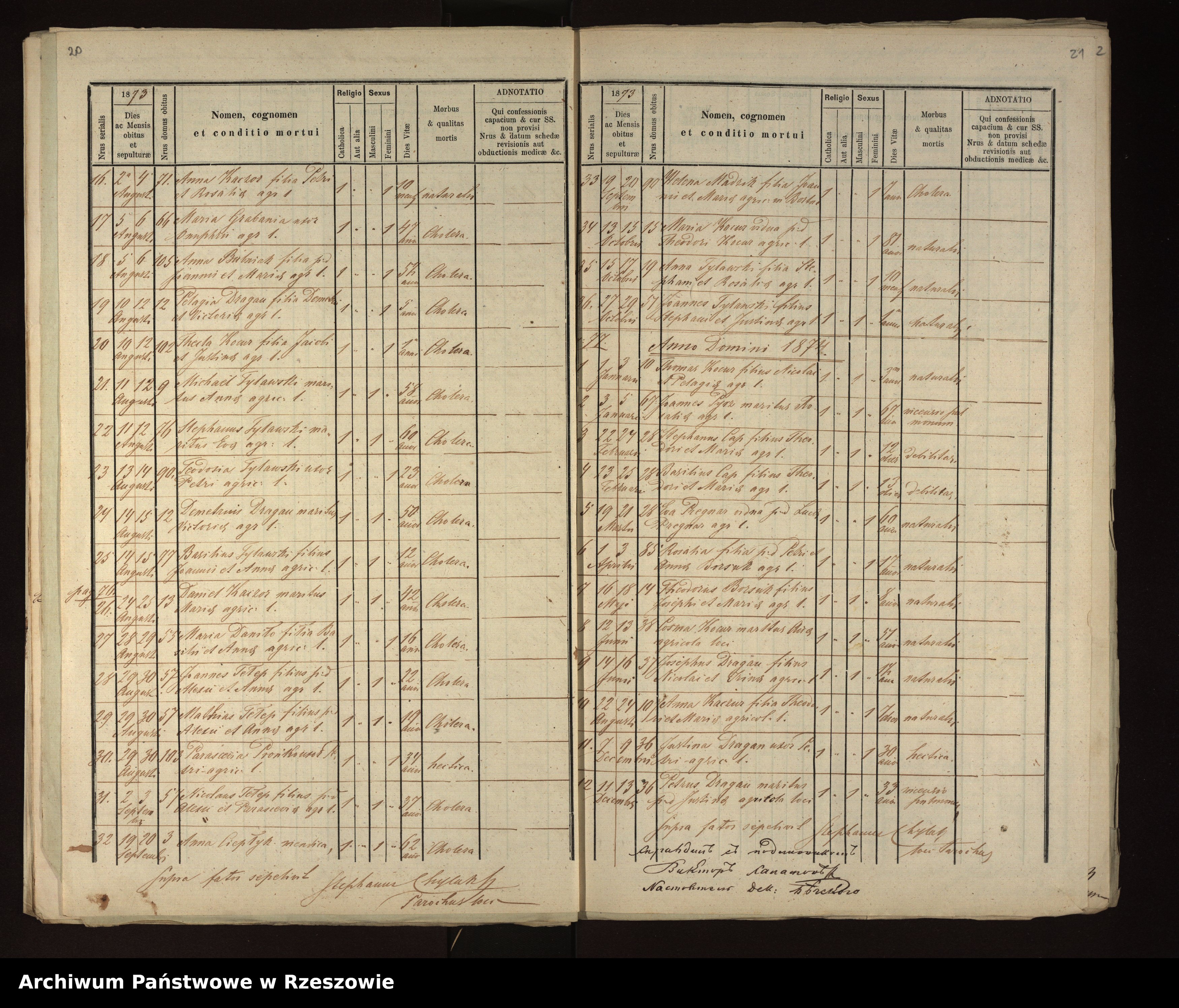 | 20 | 1873.10.13 | Rozdziele | 19 | Anna Tylawski | Catholic | female | 10m | Naturalis | Stephanus Tylawski | Rosalia Tylawski | ||