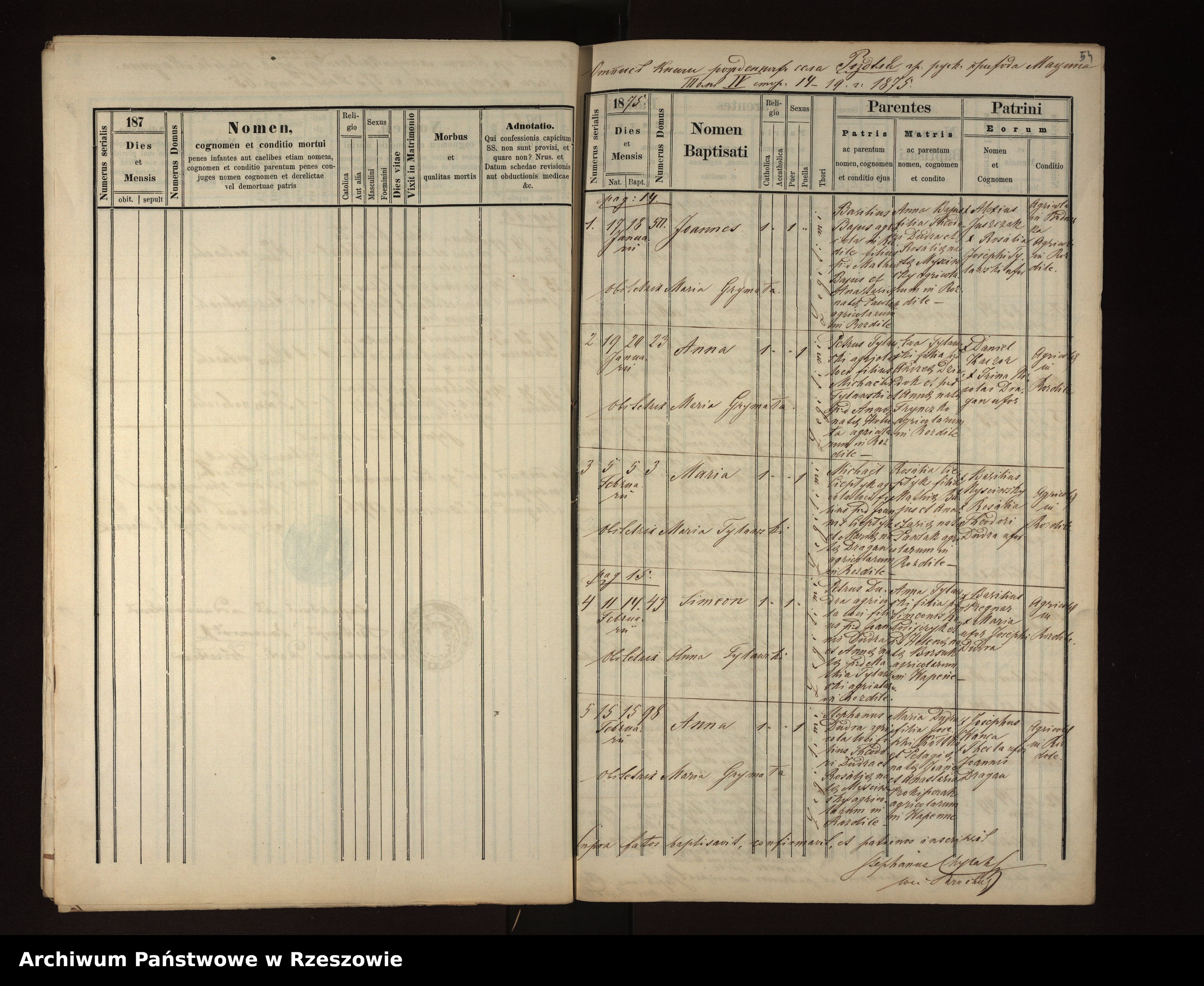 | 5 | 1875.02.15 | Rozdziele | 98 | Anna Dudra | Catholic | female | Stephanus Dudra | Maria Kołtko |
