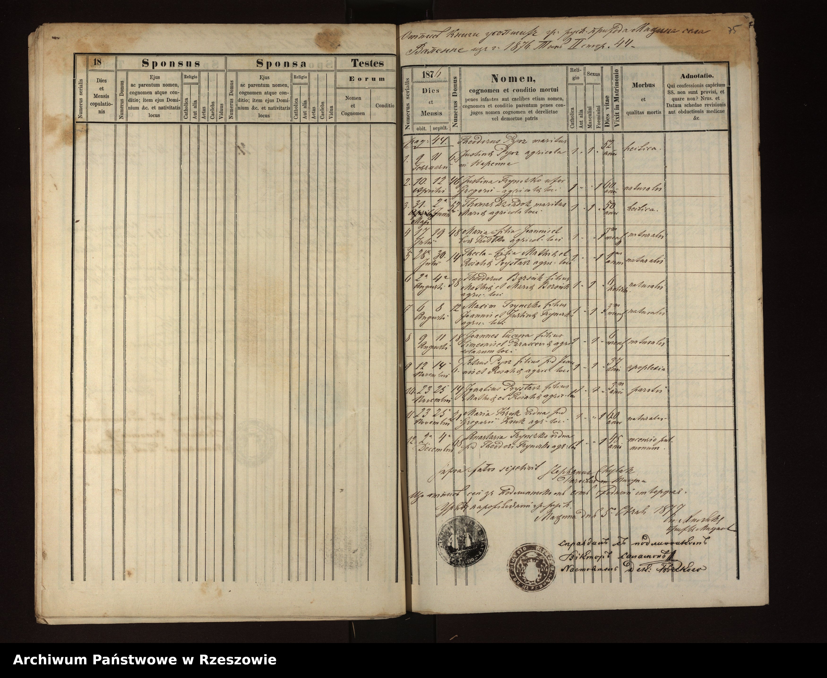 Metrical Records for the Greek Catholic Parish of Męcina Wielka, 1873-1879