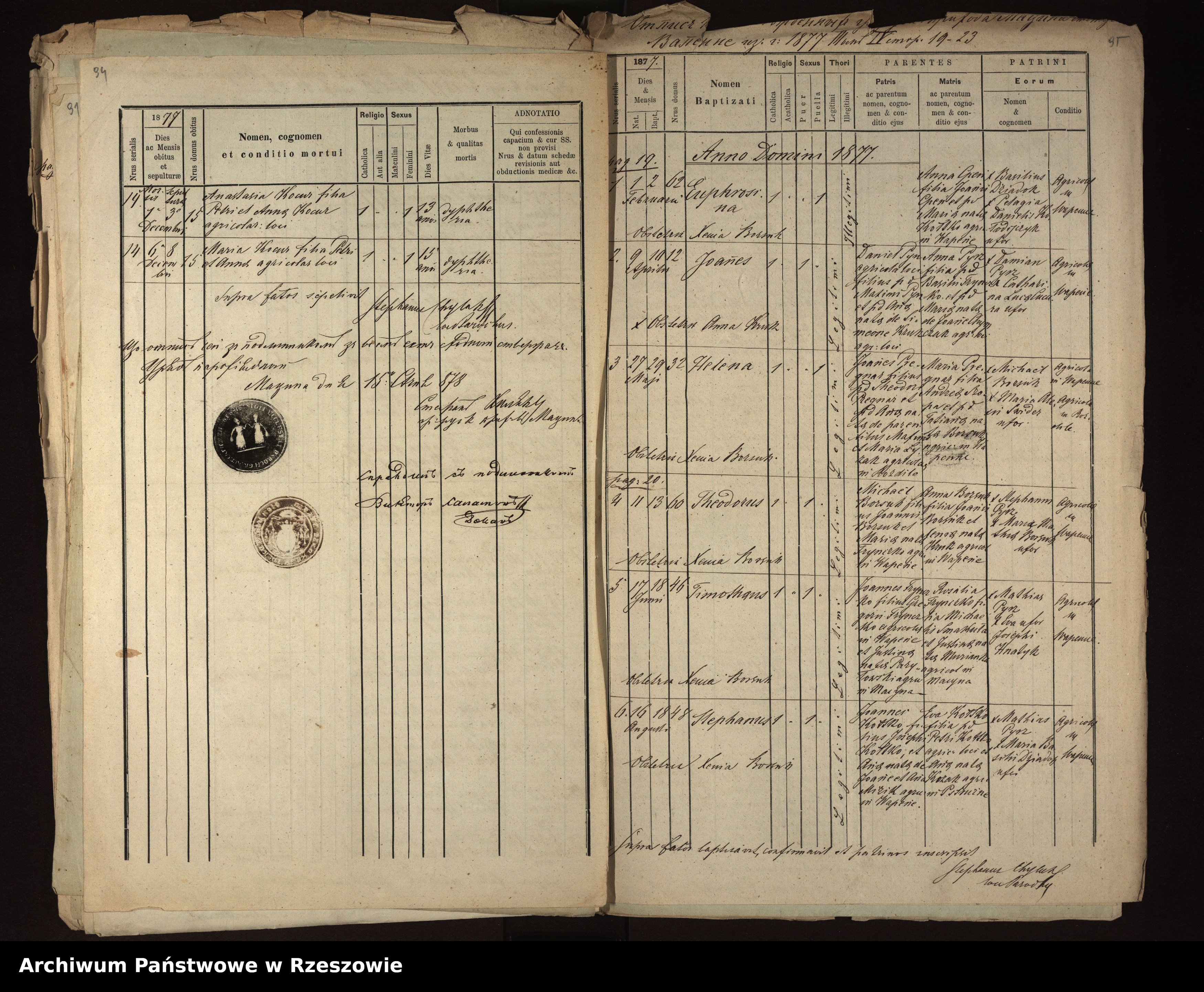 | 1 | 1877.12.01 | Rozdziele | 15 | Anastasia Kocur | Catholic | female | 13 | dyphtheria | Petrus Kocur | Anna Kocur | ||