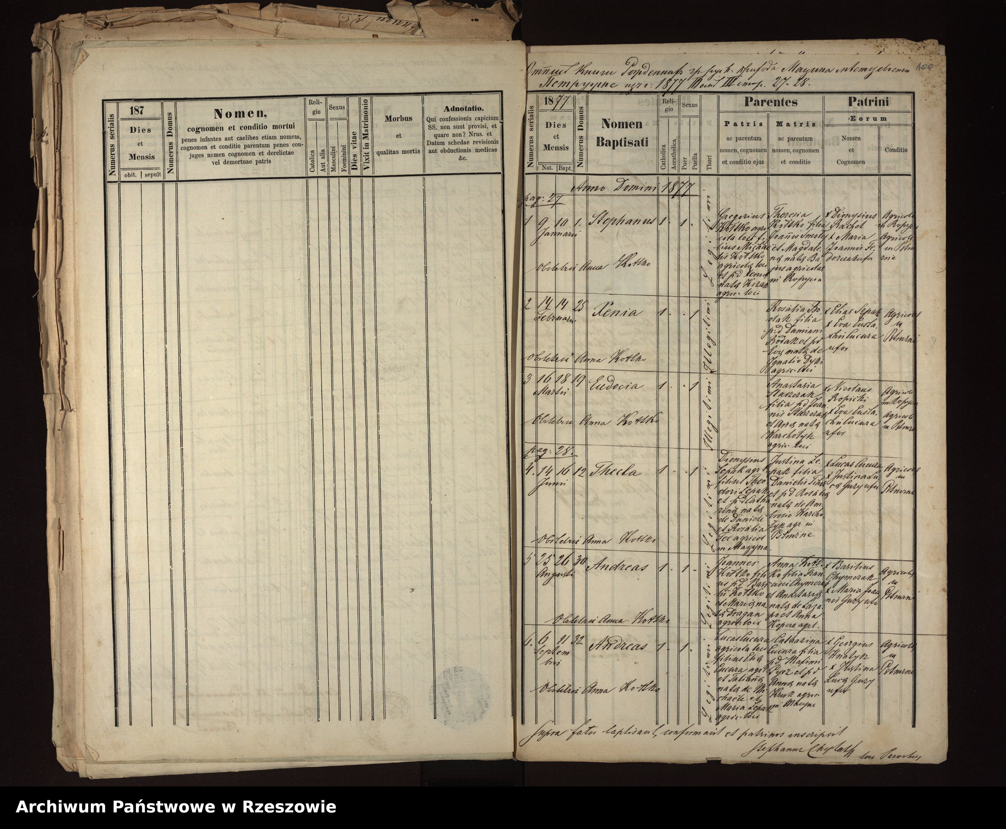 Metrical Records for the Greek Catholic Parish of Męcina Wielka, 1873-1879