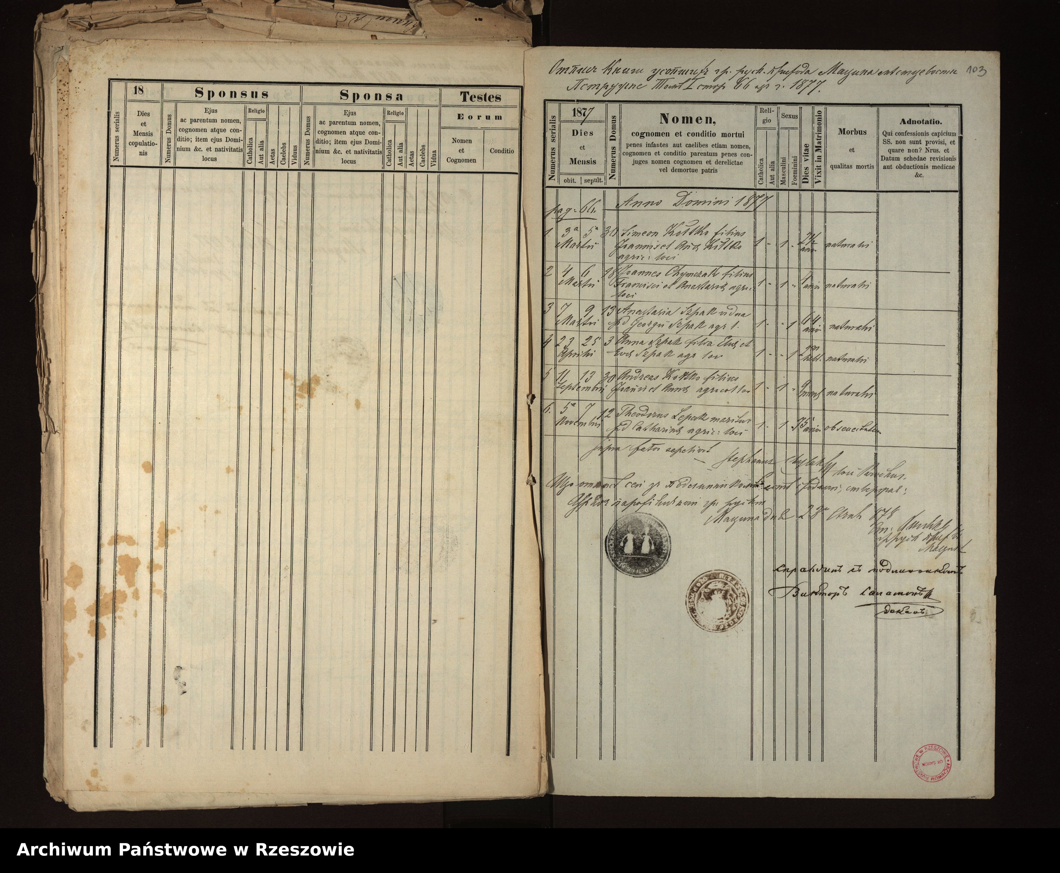 Metrical Records for the Greek Catholic Parish of Męcina Wielka, 1873-1879