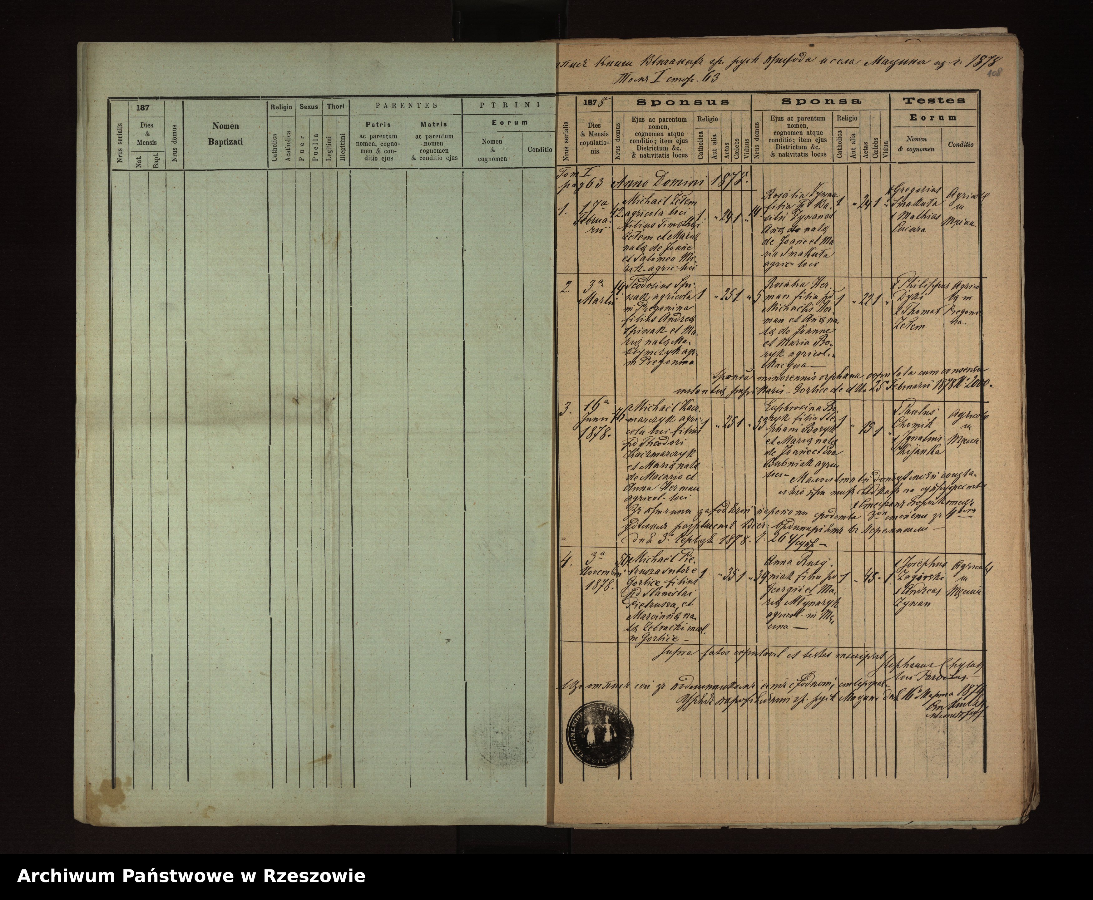 Metrical Records for the Greek Catholic Parish of Męcina Wielka, 1873-1879