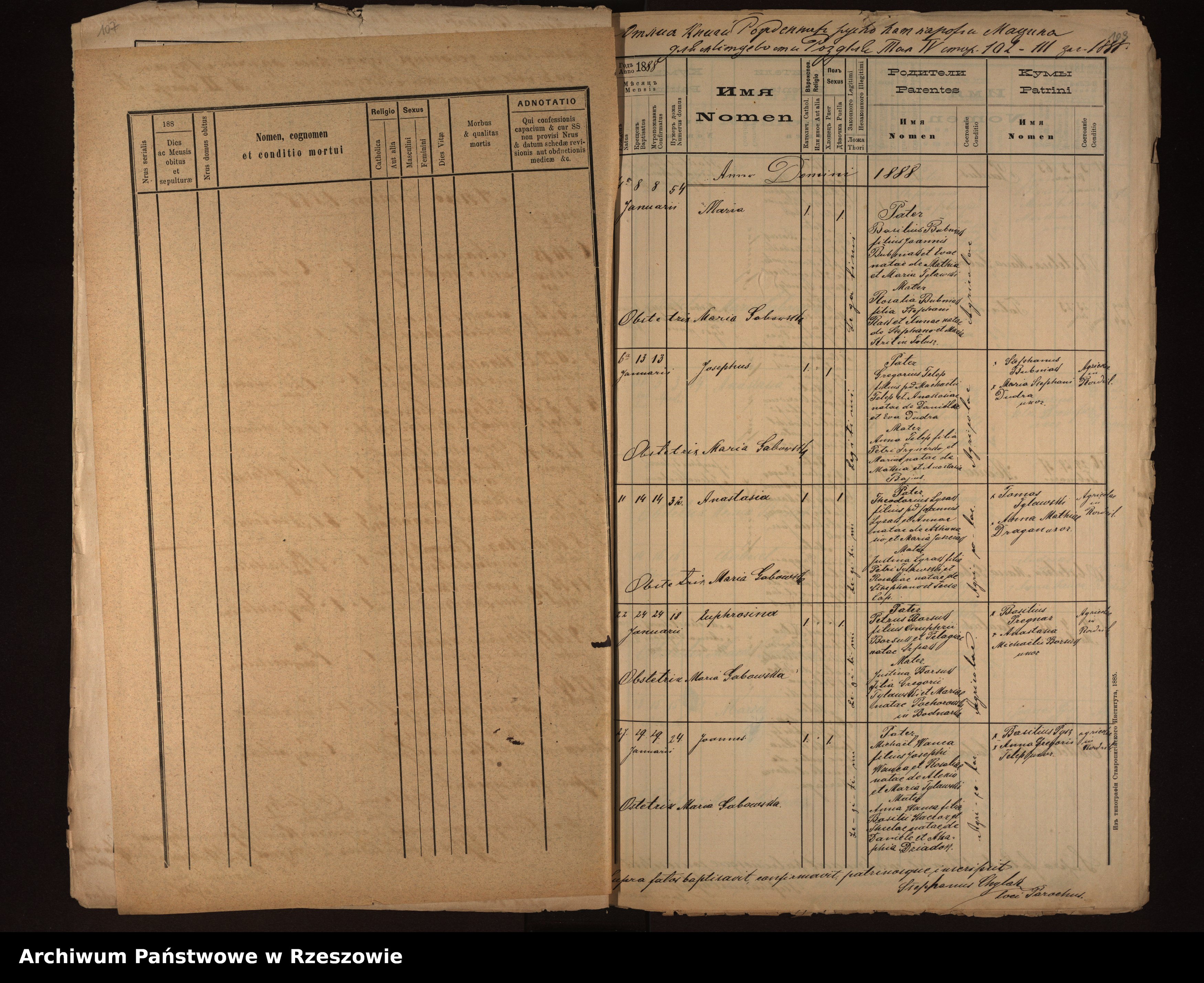 | 4 | 1888.01.24 | Rozdziele | 18 | Euphrosina Borsuk | Catholic | female | Petrus Borsuk | Justina Tylawski | ||