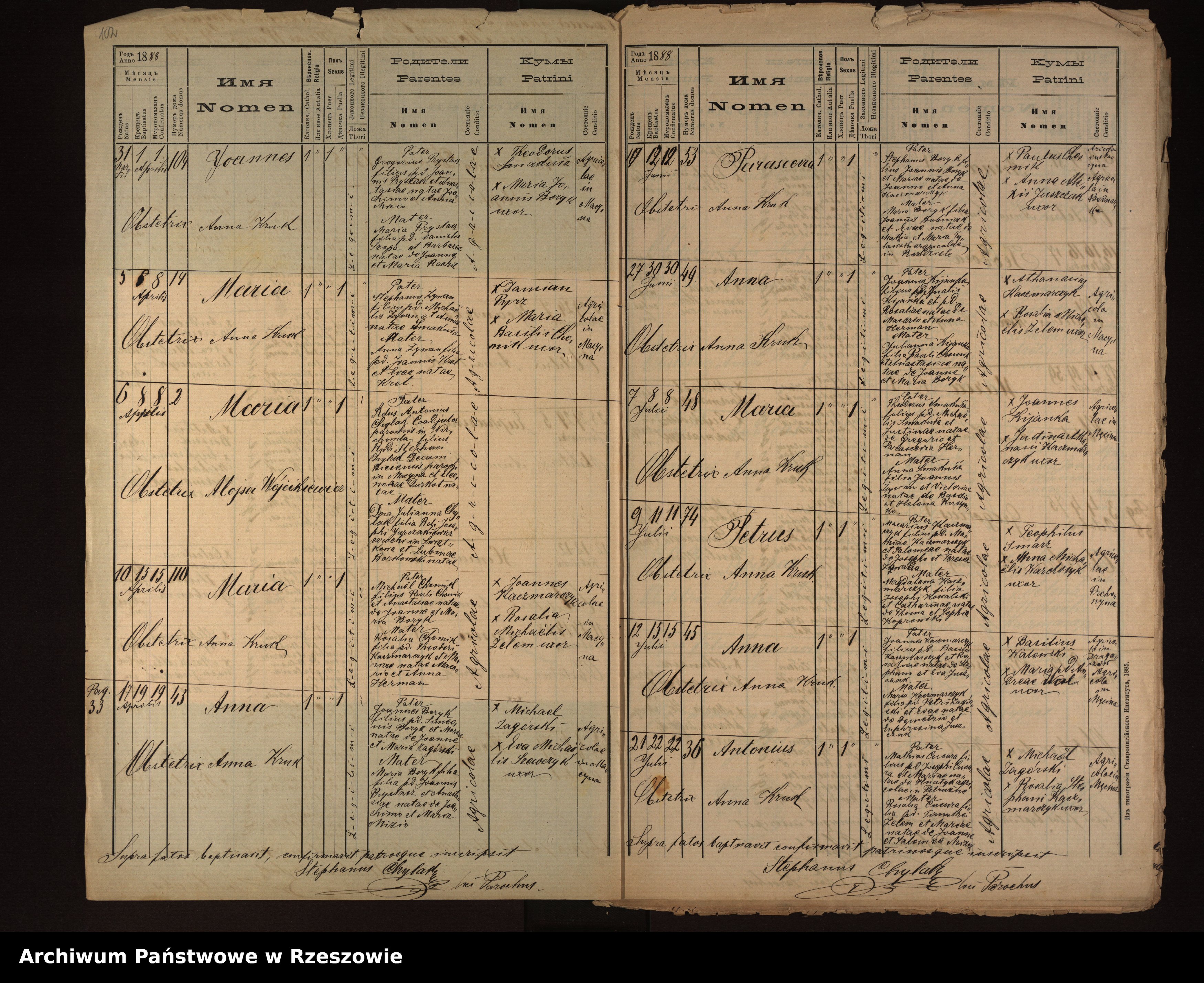 | 5 | 1888.04.17 | Męcina Wielka | 43 | Anna ? | Catholic | female | Joannes Boryk | Maria Prystasz | ||