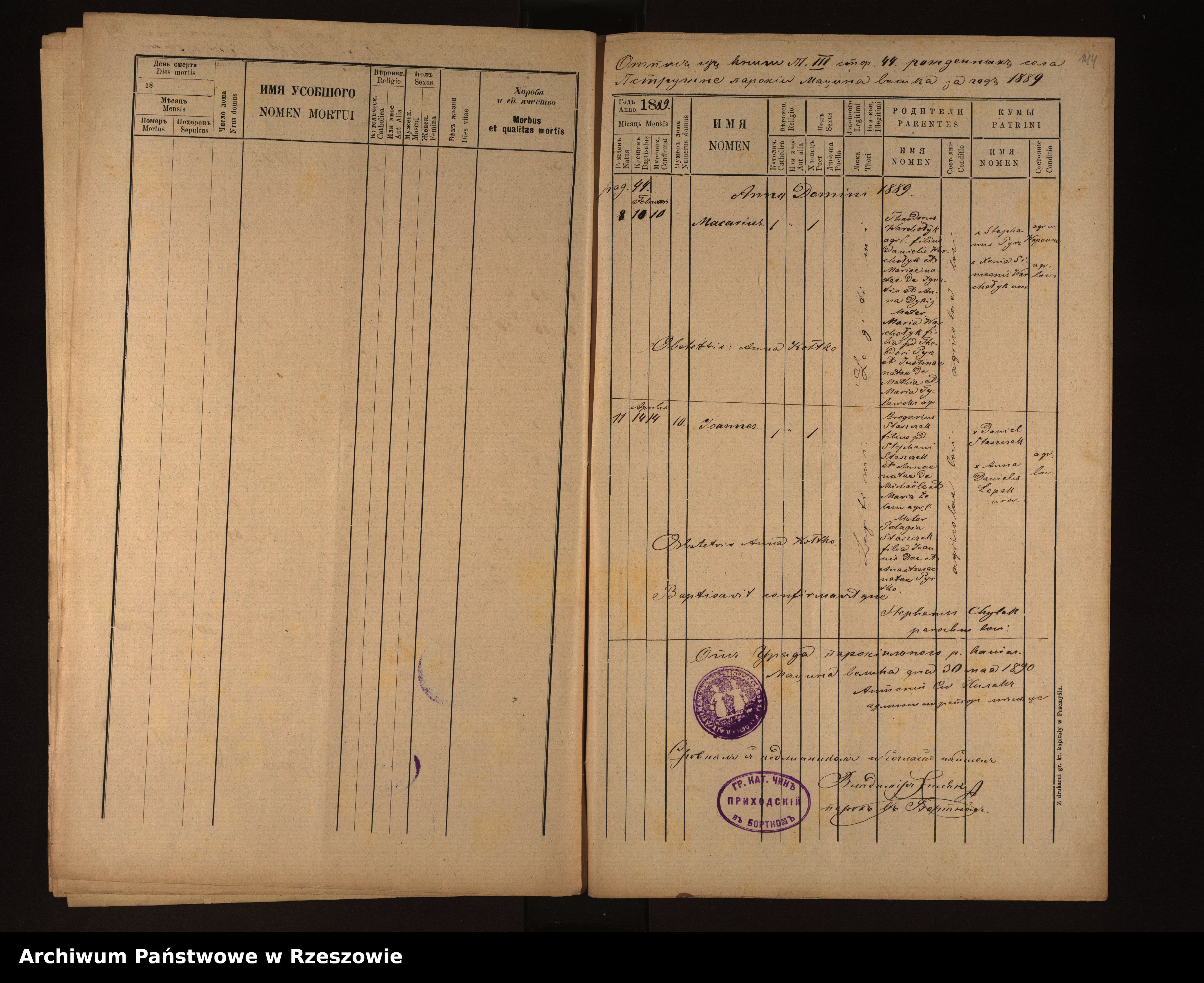 Metrical Records for the Greek Catholic Parish of Męcina Wielka, 1881-1889