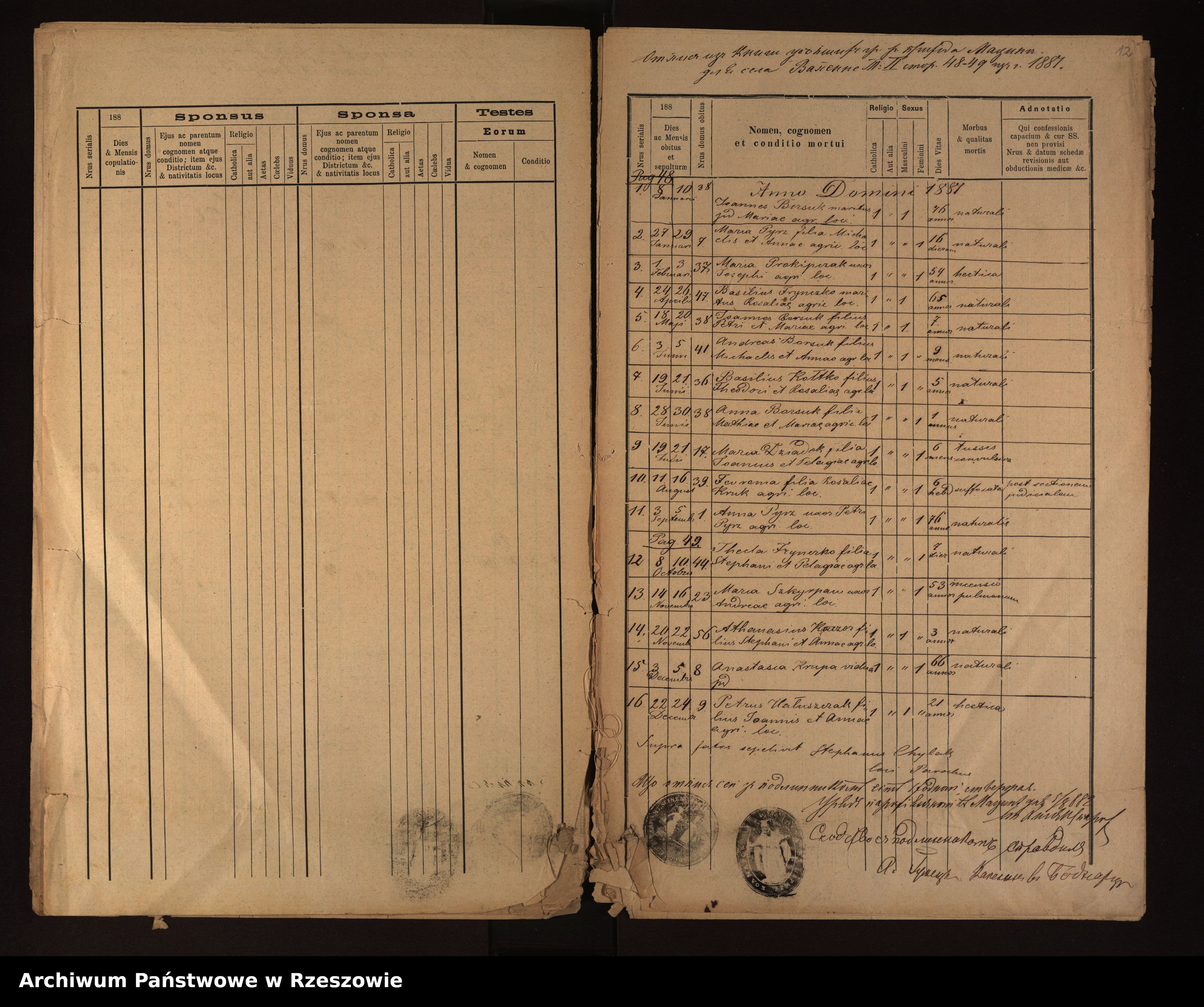 Metrical Records for the Greek Catholic Parish of Męcina Wielka, 1881-1889
