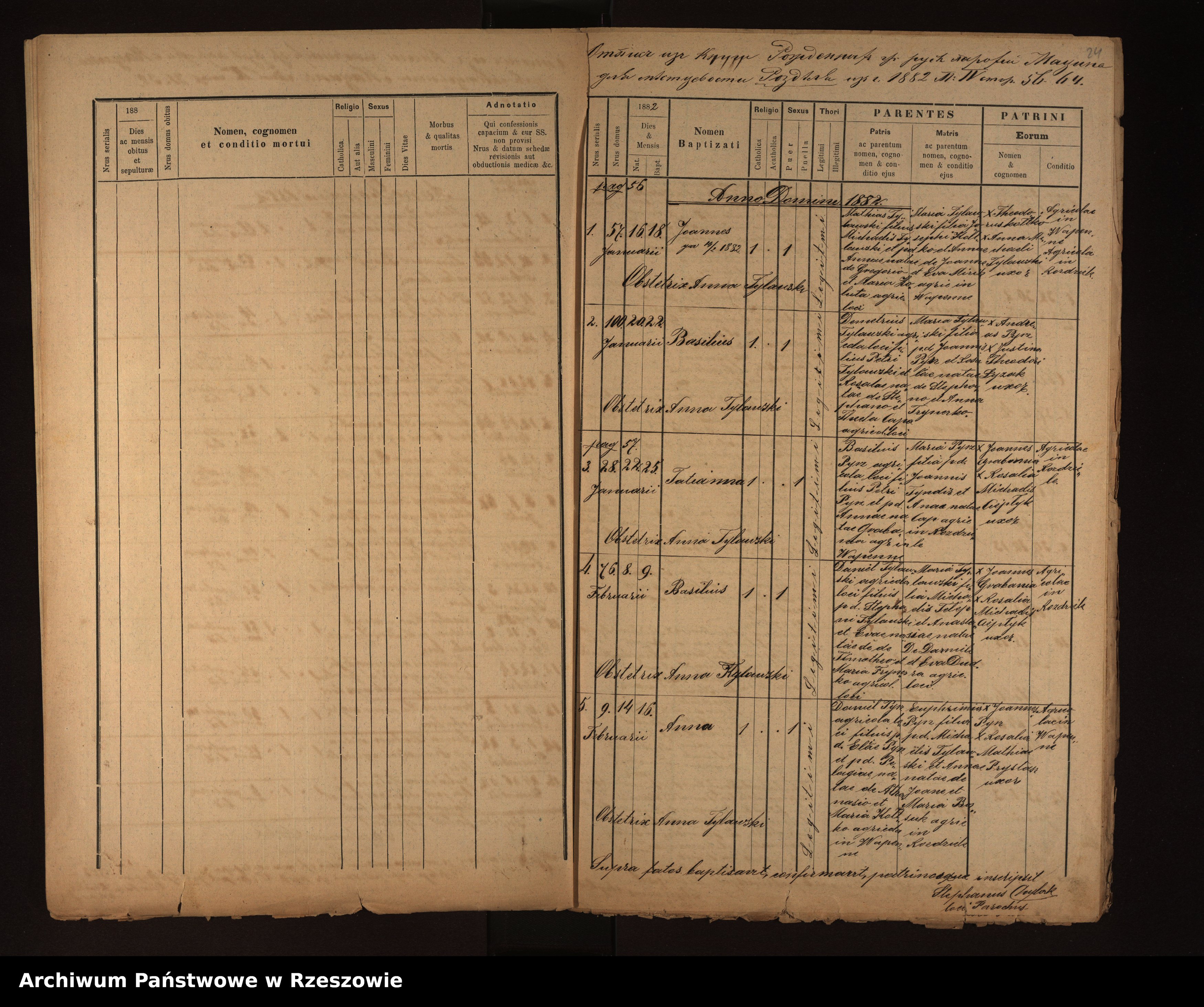 | 5 | 1882.02.14 | Rozdziele | 9 | Anna Pyrz | Catholic | female | Daniel Pyrz | Euphimia Tylawski |