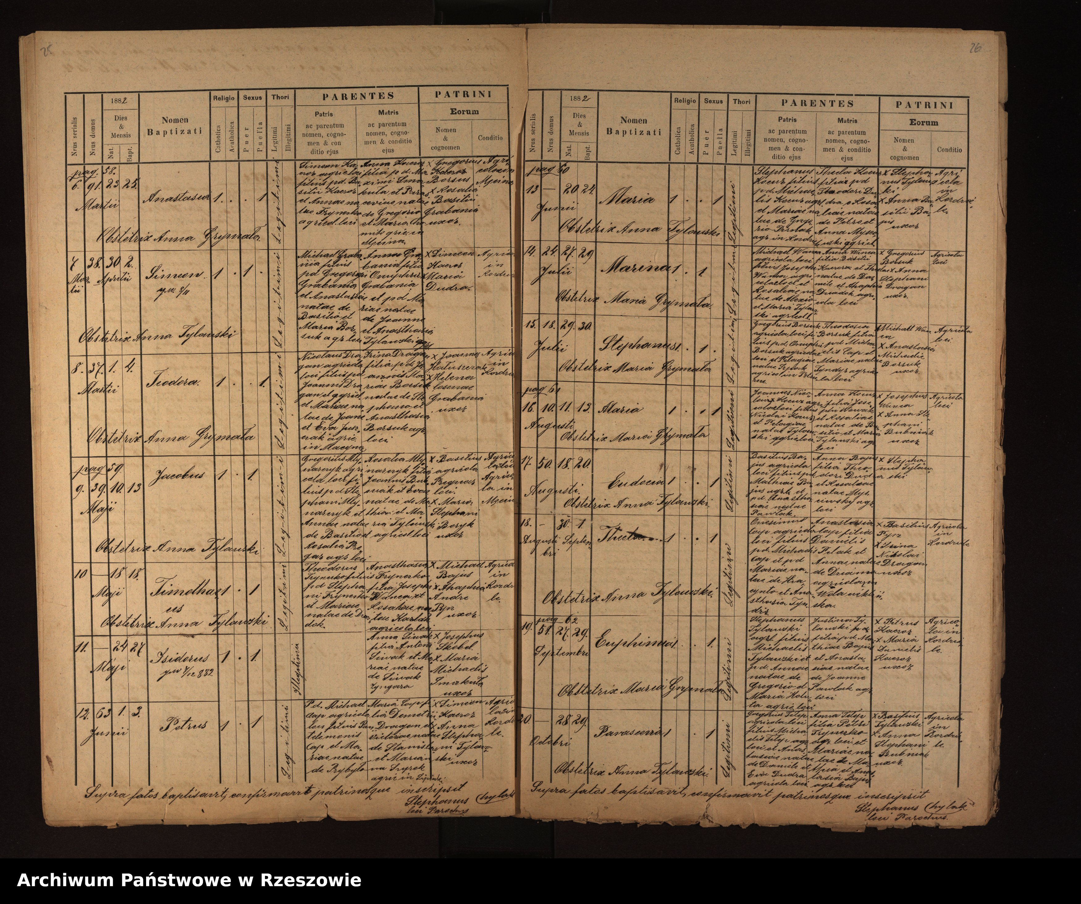 | 10 | 1882.07.29 | Rozdziele | 18 | Stephanus Borsuk | Catholic | male | Gregorius Borsuk | Theodosia Cap | ||