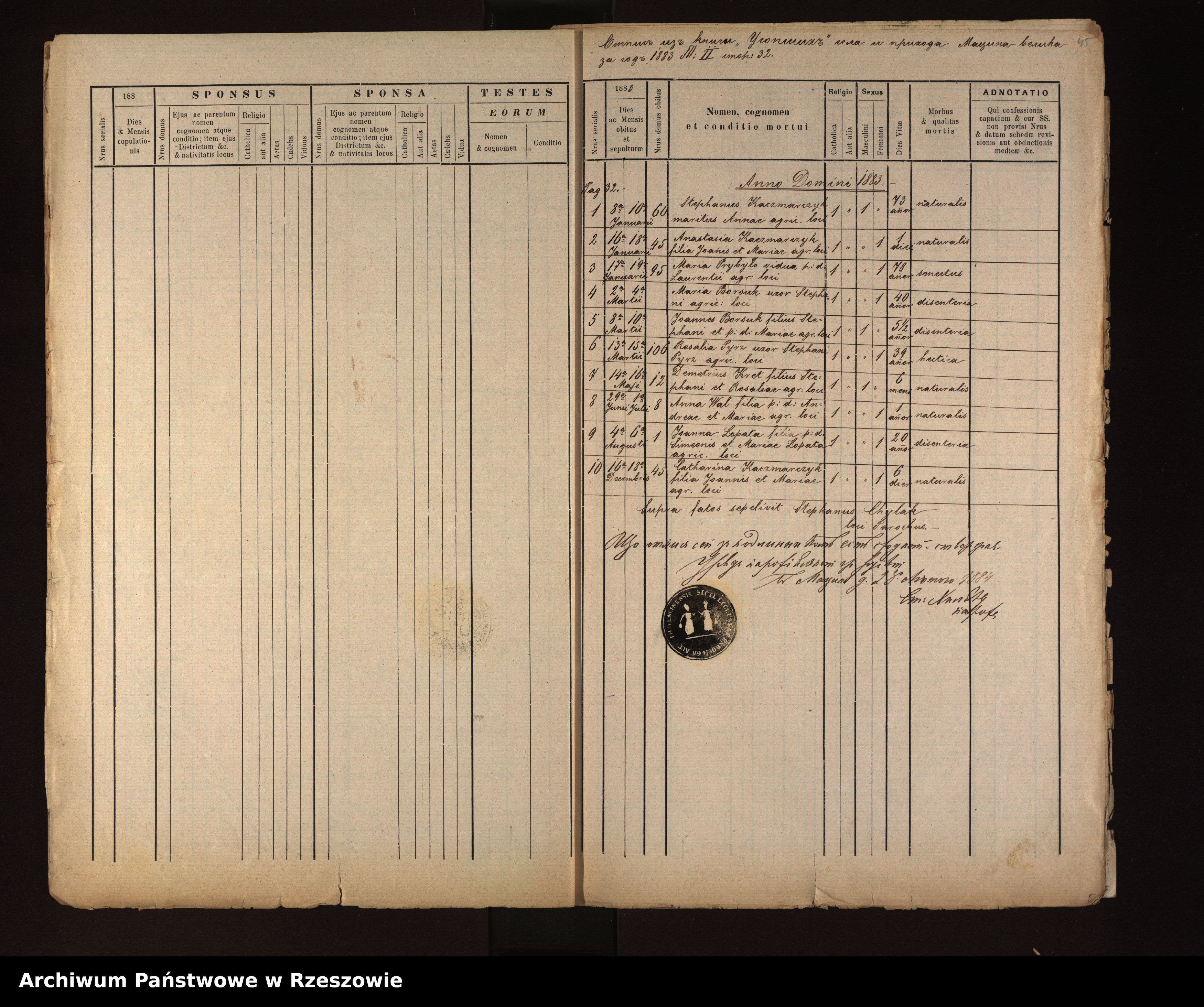 | 9 | 1883.08.04 | Męcina Wielka | 1 | Joanna Lopała | Catholic | female | 20 | disenteria | Simeon Lopała | Maria Lopała | ||