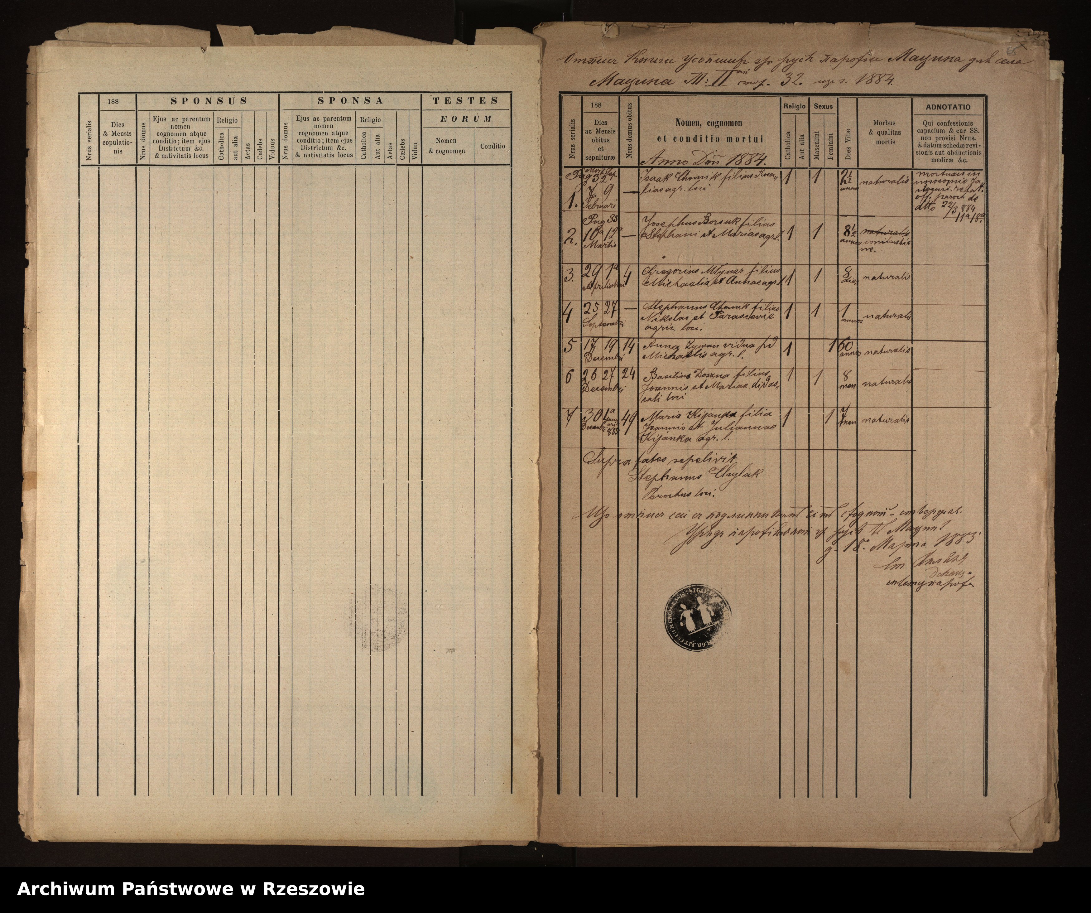 Metrical Records for the Greek Catholic Parish of Męcina Wielka, 1881-1889