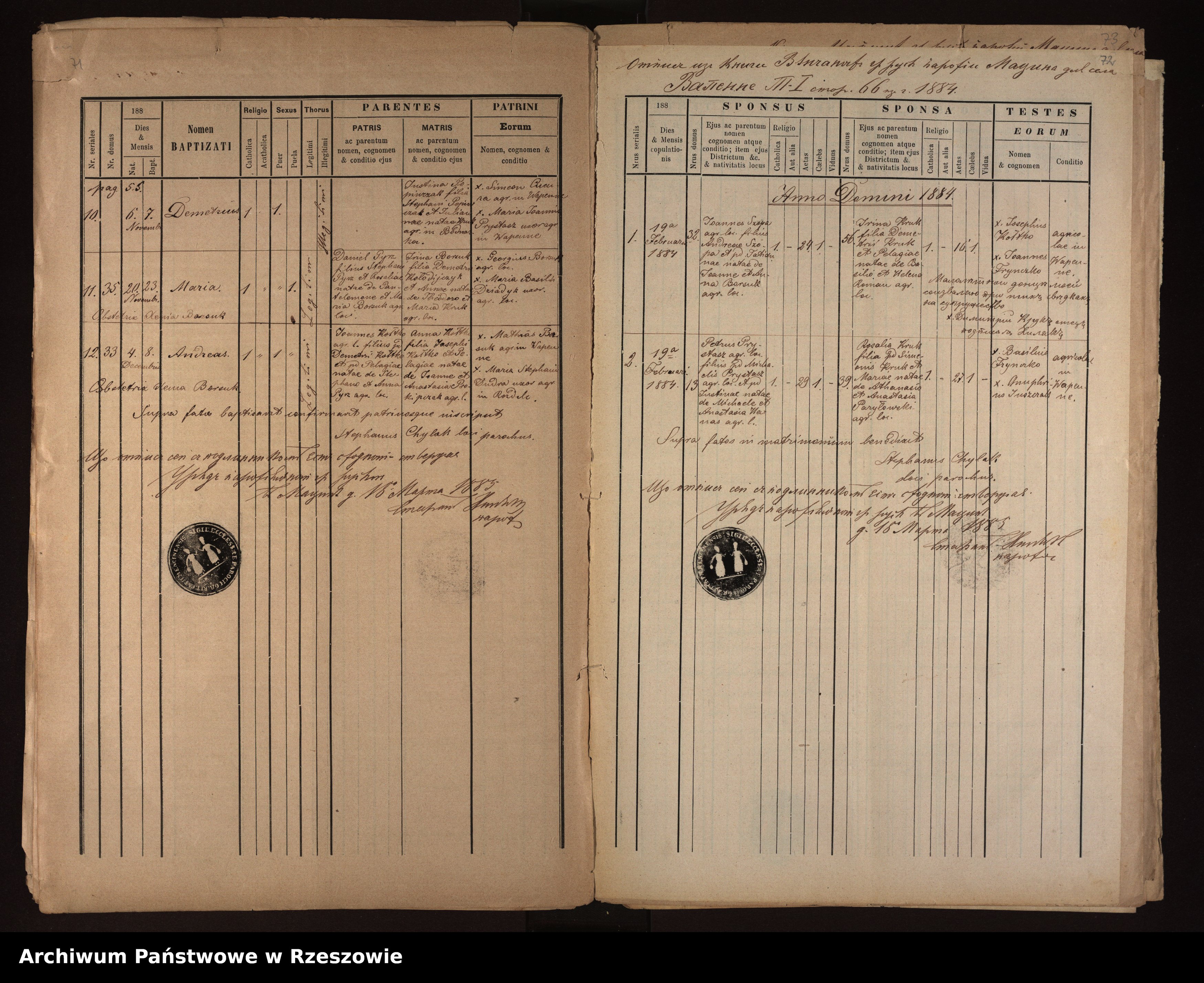 Metrical Records for the Greek Catholic Parish of Męcina Wielka, 1881-1889