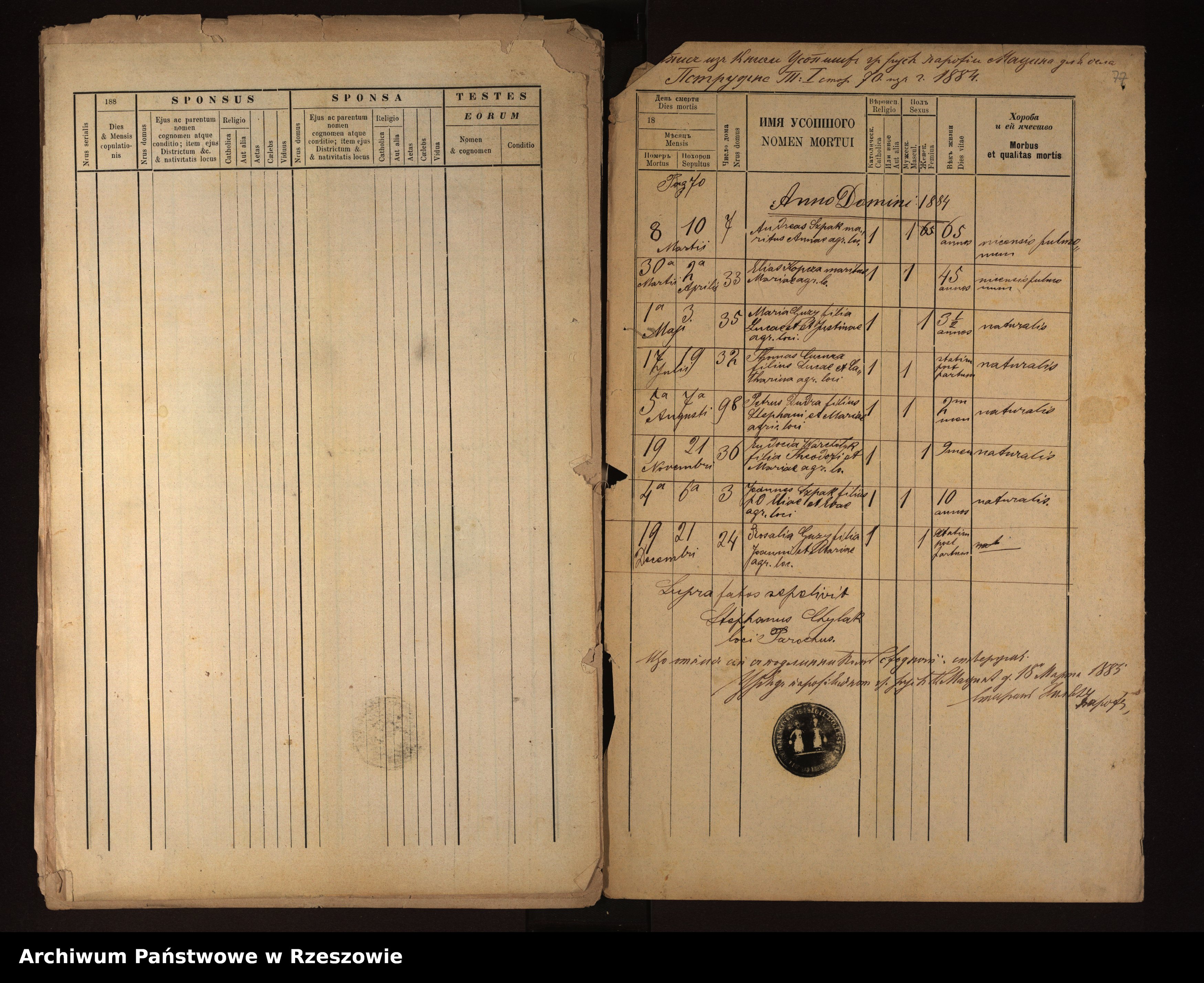 Metrical Records for the Greek Catholic Parish of Męcina Wielka, 1881-1889